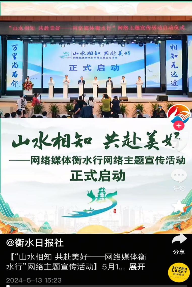 衡水日报社抖音号2024年5月13日发布《“山水相知 共赴美好——网络媒体衡水行”网络主题宣传活动》