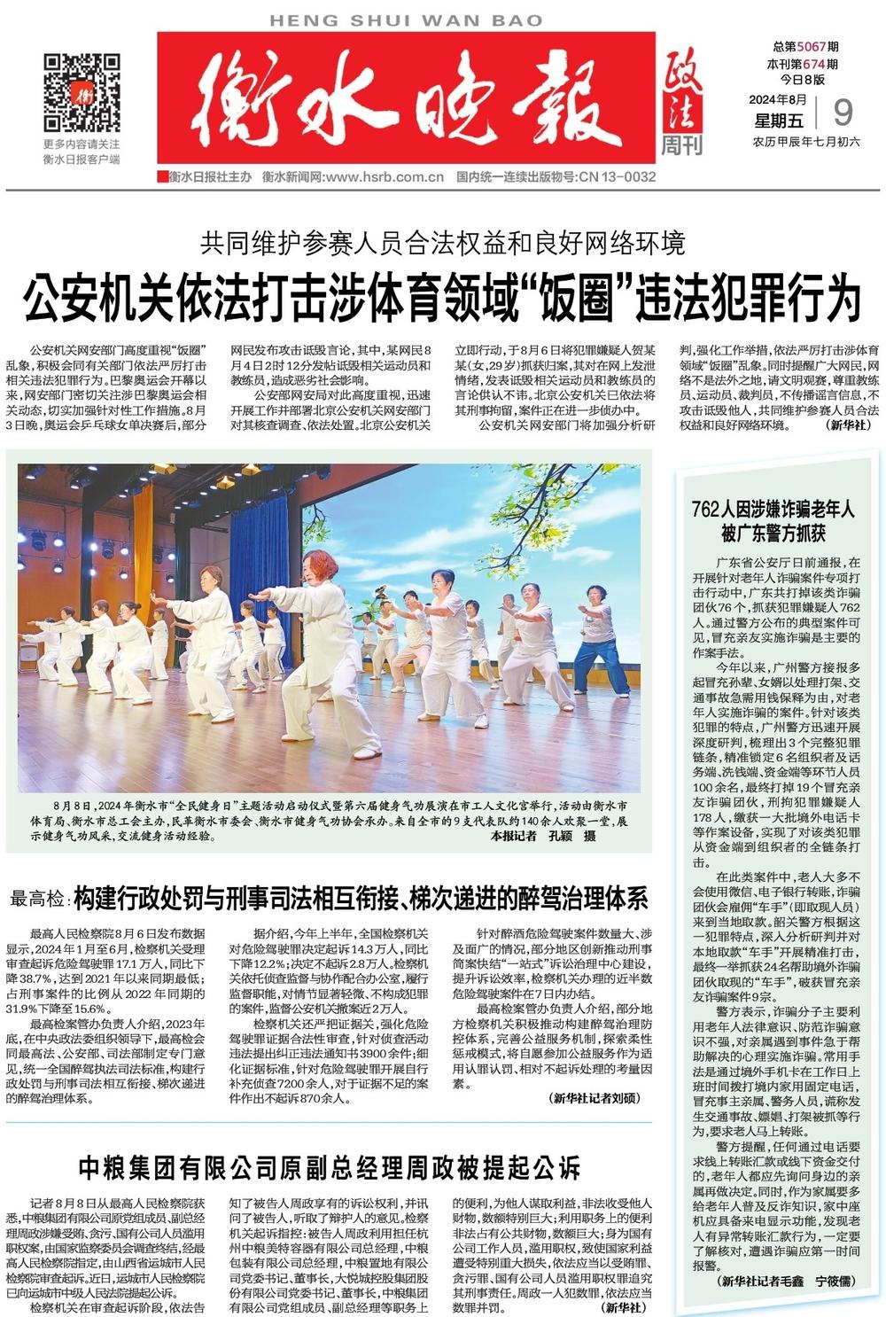 《衡水晚报》2024年8月9日刊发《政法周刊》