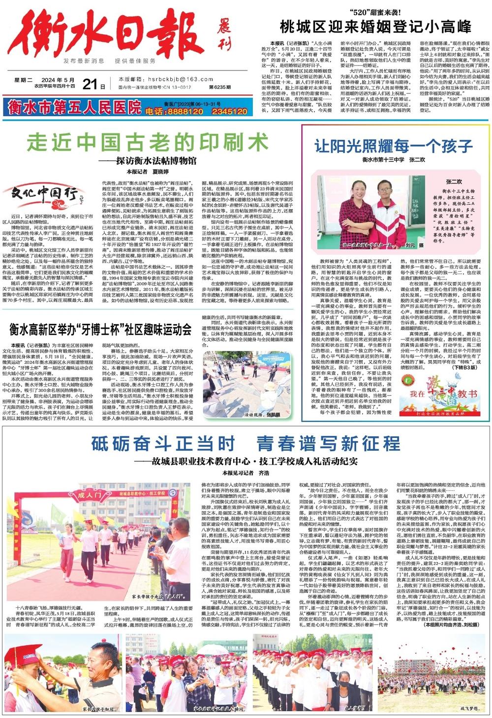 《衡水日报·晨刊》2024年5月21日在B1版刊发“文化中国行”栏目《走近中国古老的印刷术——探访衡水法帖博物馆》