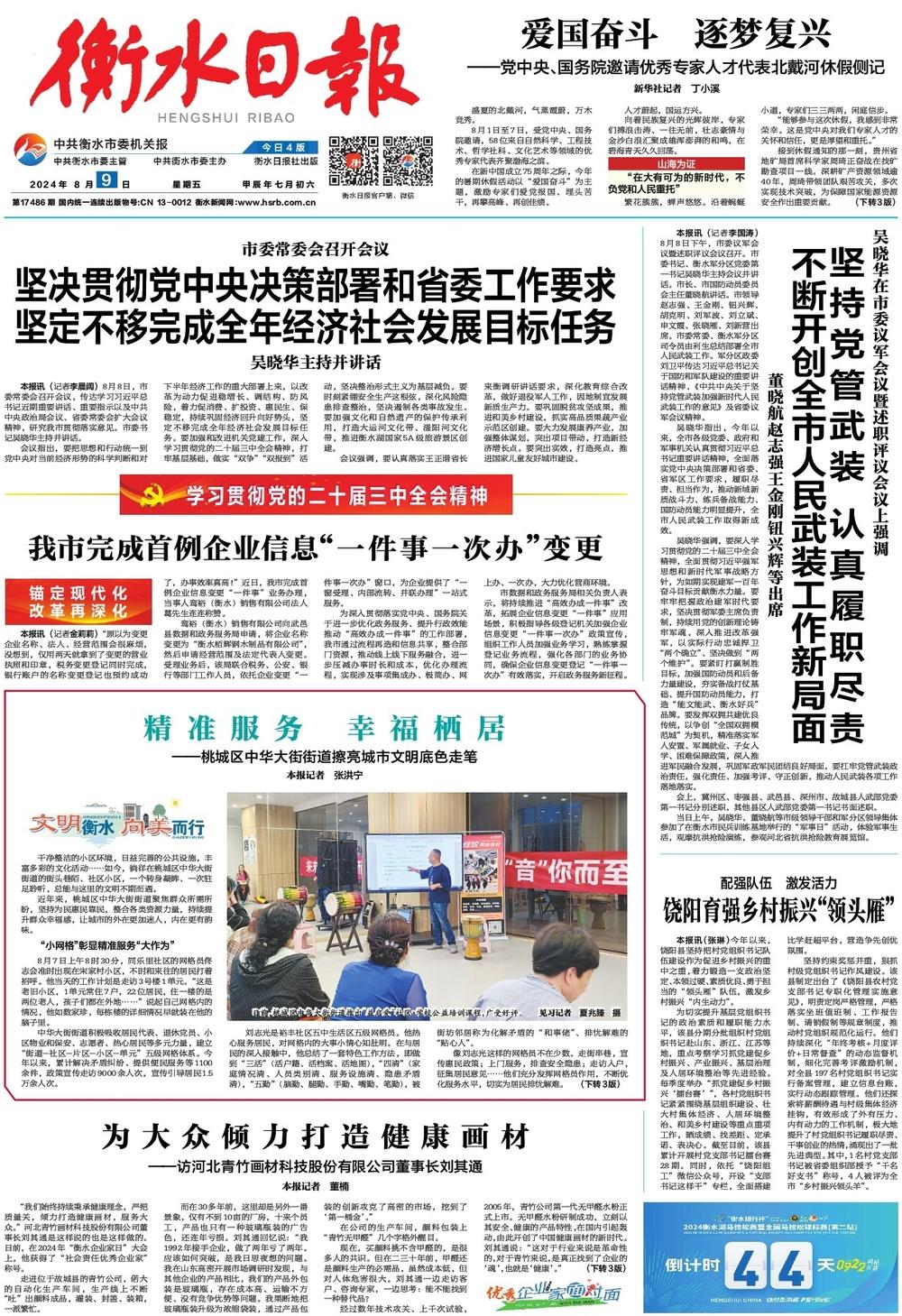 《衡水日报》2024年8月9日头版“文明衡水·向美而行”栏目刊发《精准服务 幸福栖居——桃城区中华大街街道擦亮城市文明底色走笔》