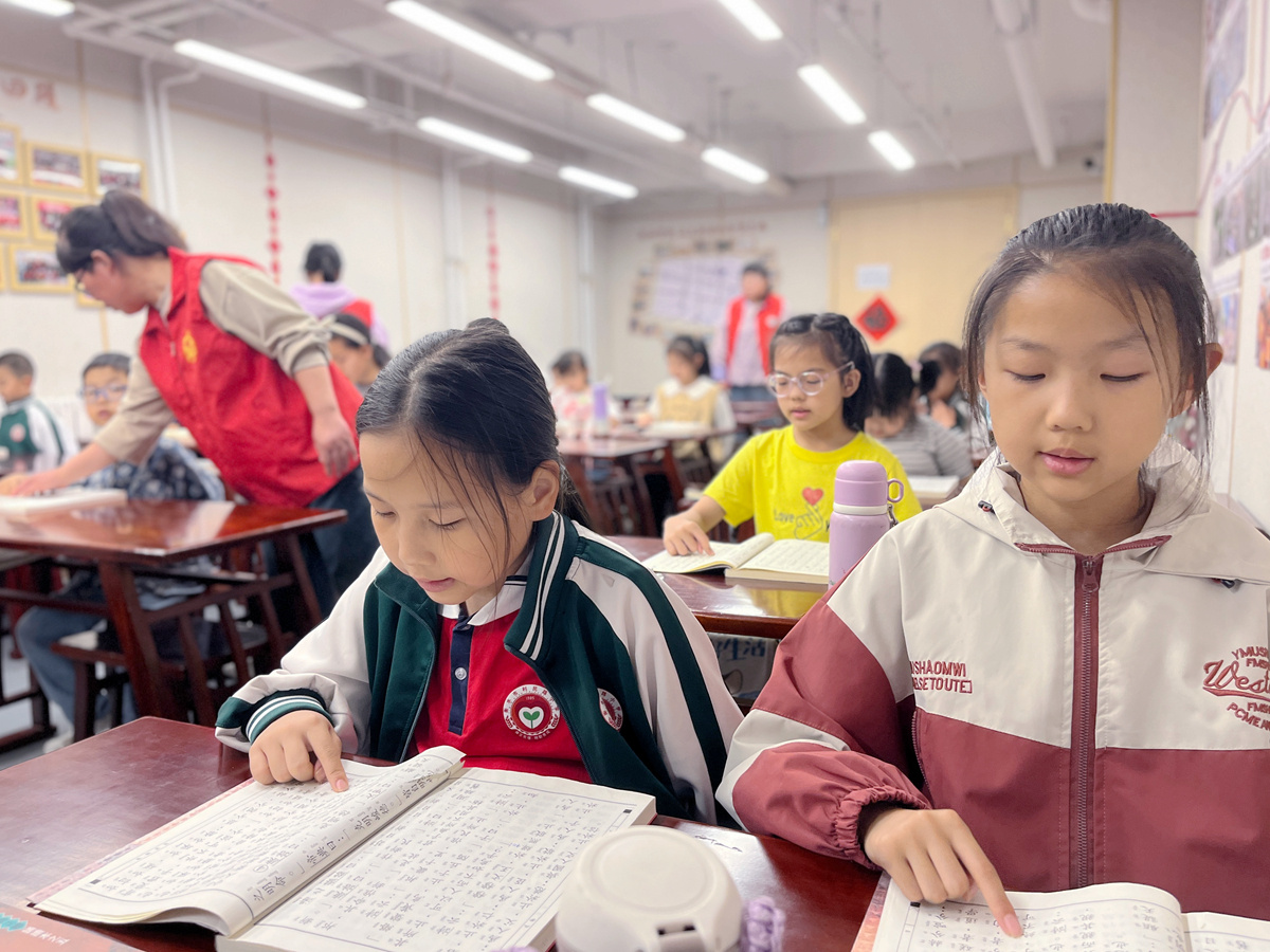 孩子们通过诵读感受中华优秀传统文化的魅力。孙林芝 摄