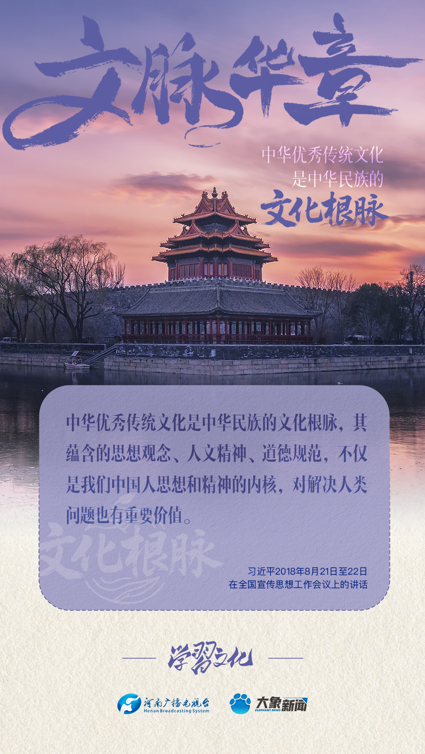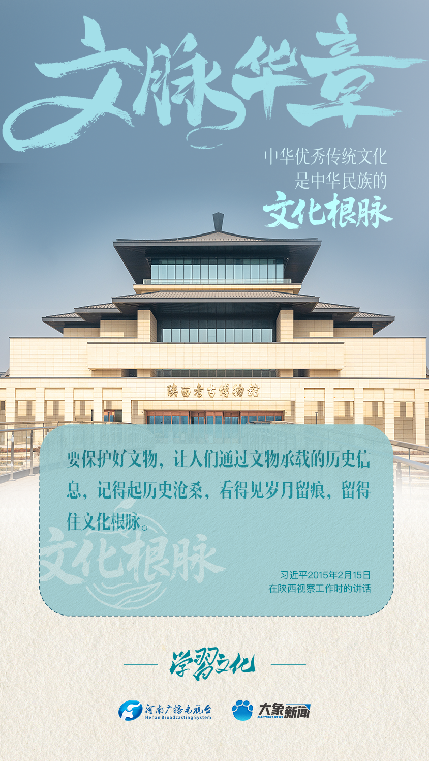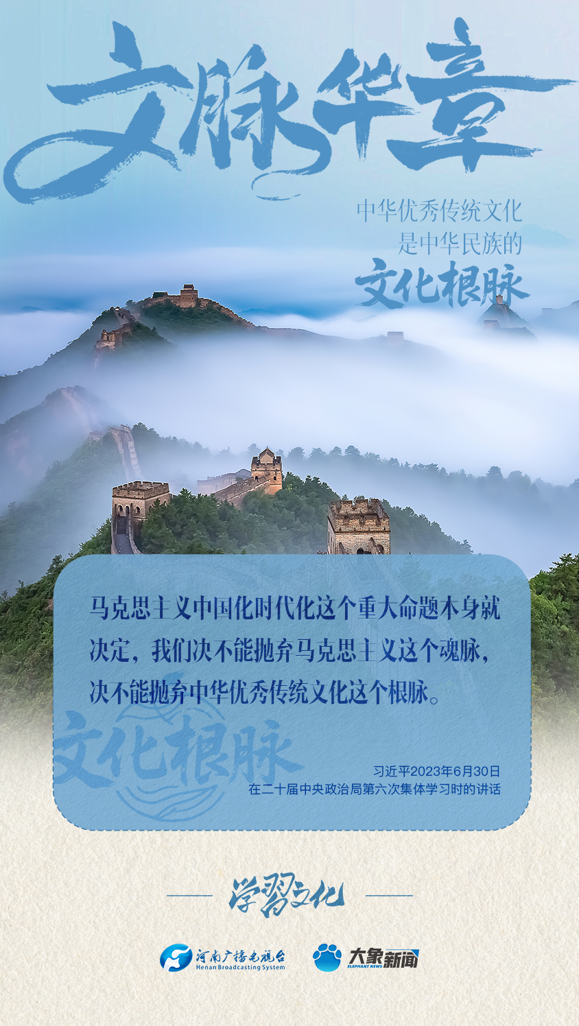 “中华优秀传统文化是中华民族的文化根脉”“决不能抛弃中华优秀传统文化这个根脉”……党的十八大以来,习近平总书记多次以“根脉”喻指中华优秀传统文化,并对为什么坚守、坚守什么、怎样坚守文化根脉作出了一系列重要论述。大象新闻为您梳理,我们一起学习。
