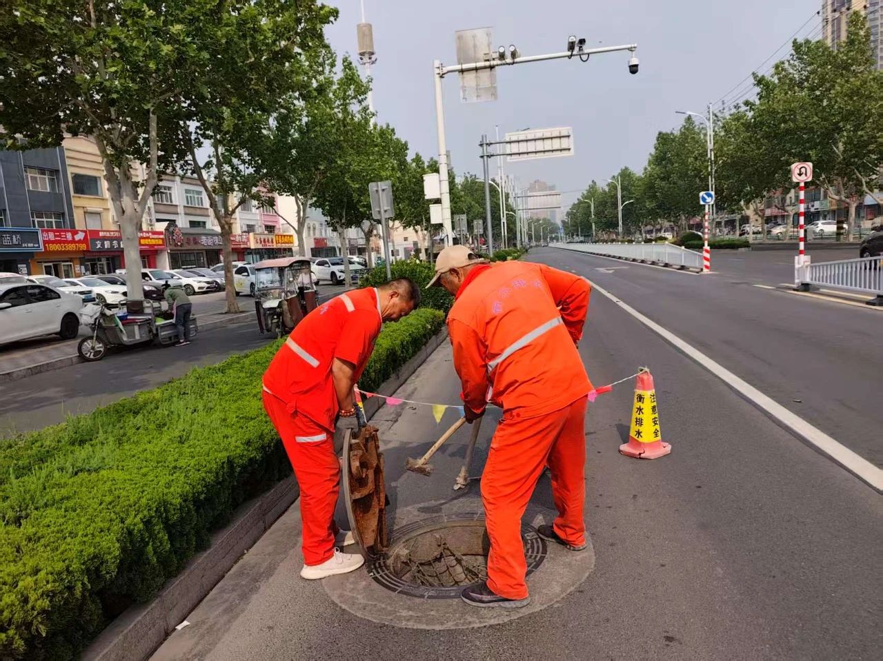 近日,在衡水市区育才街与和平路交叉口附近,衡水市城管综合行政执法局排水管理中心清淤班组维护人员正在对此处雨水收水井和雨水管道进行同步联动式清淤作业,几番操作下来,淤积在管道内壁的泥沙等杂质被清理干净,畅通无阻。
