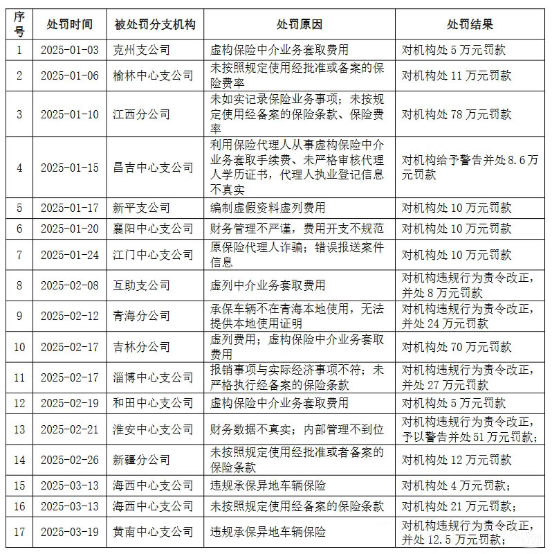 平安产险连续数月罚单不断。