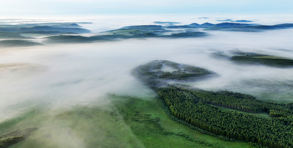 经过多年建设,广袤无垠的林海让这片曾经的荒地重焕生机。如今的塞罕坝,云杉成片、绿草如茵。