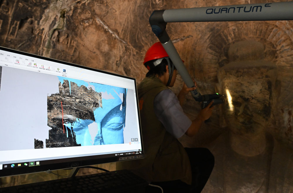 面对历经千年的石窟,如何延续其生命力?科技成为关键答案。文物保管展示与文献资料中心的张国锋,日常工作便是对石窟进行三维数字化扫描。他介绍,通过这项技术建立的高精度数字档案,不仅实现文物信息的永久保存,更让不可移动的石窟“走出去”,突破时空限制,让更多人领略其文化魅力。