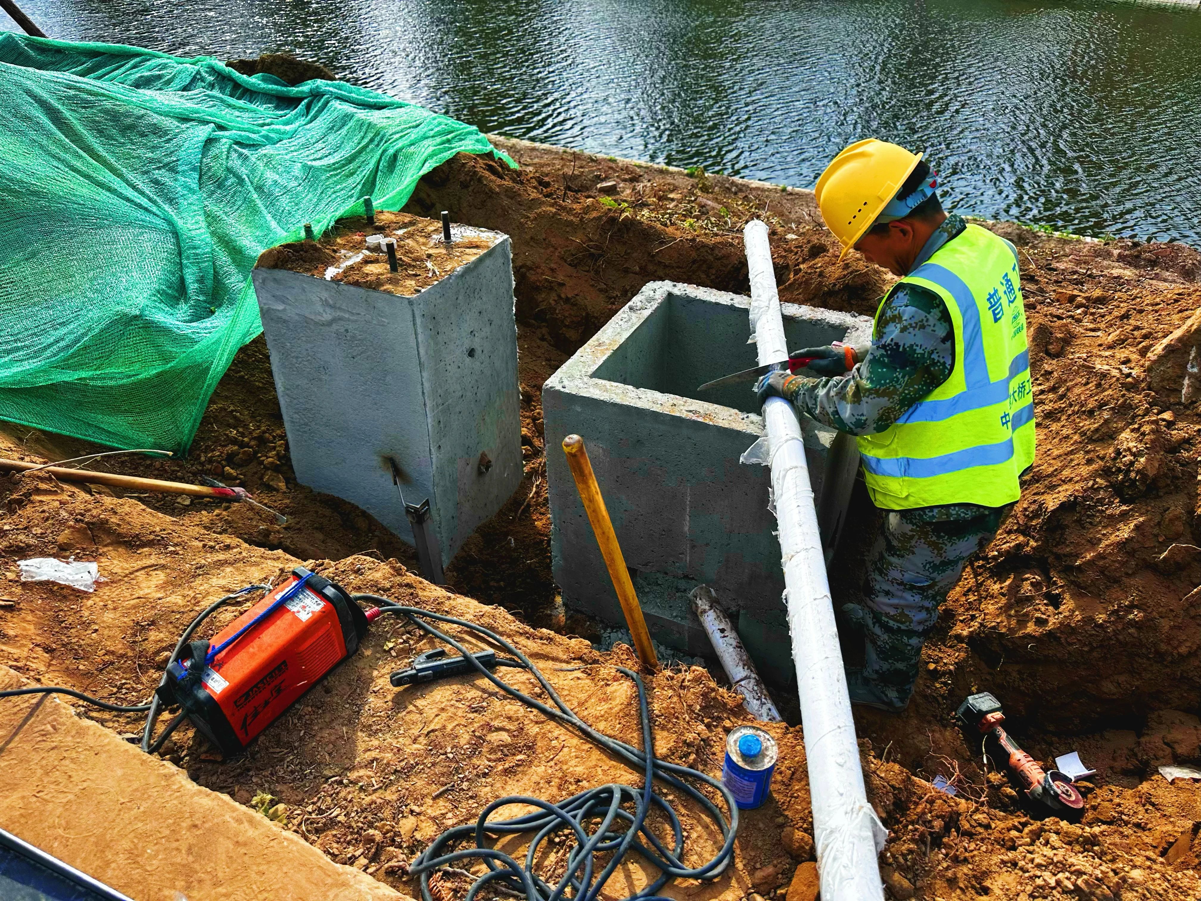 道路及排水口改造工程同样亮点纷呈。两岸16.54万平方米地表清理工作与1.2 万平方米堤顶路破损植草砖拆除任务圆满完成,为后续道路升级改造奠定坚实基础。13.5千米旧堤顶路与10.5 千米新建亲水步道即将披上彩色透水混凝土与透水沥青混凝土的绚丽“外衣”,不仅会大幅提升道路颜值,更将精心打造集便捷通行、休闲漫步于一体的高品质健康步道。沿河7个排水口改造工程稳步推进,其中2个排水口的旋流沉砂设施与5个排水口的溢流格栅设施,将有效拦截雨水中的杂质与漂浮物,守护滏阳河一泓碧水。