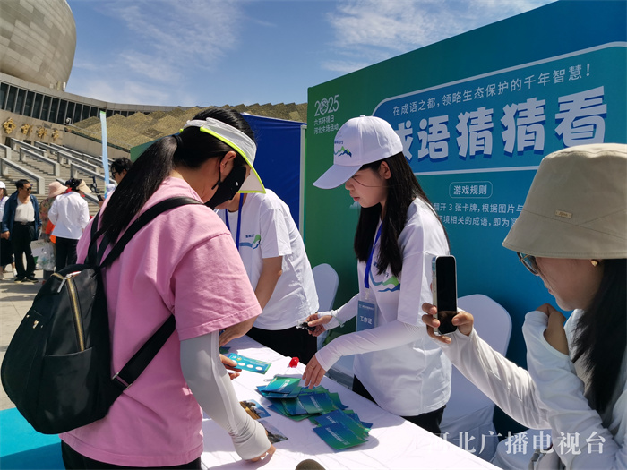 “那儿有猜成语,咱们去试试”。在邯郸大剧院广场的互动体验区,结合邯郸“成语之都”的城市特色,设置了别具一格的生态环境成语墙和“成语猜猜看”互动游戏,吸引了很多市民争相参与。