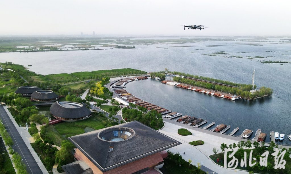 4月30日,无人机通过“北斗+”高精度定位技术,对白洋淀旅游码头区域进行巡航监测。河北日报记者 刘光昱 摄