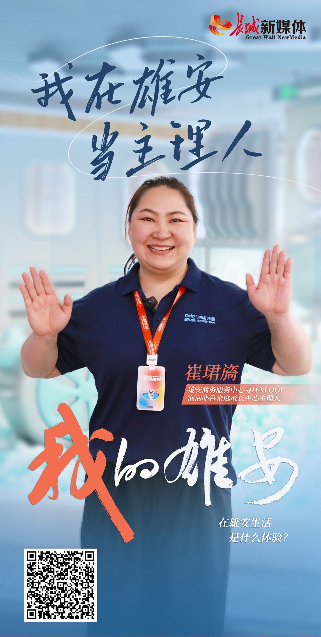 在雄安生活是什么体验?2024年,崔珺旖离开了工作生活十几年的厦门,怀揣对新生活的期待来到了雄安。现在,她是雄安商务服务中心寻环XLOOP泡泡卟鲁家庭成长中心的一名主理人。