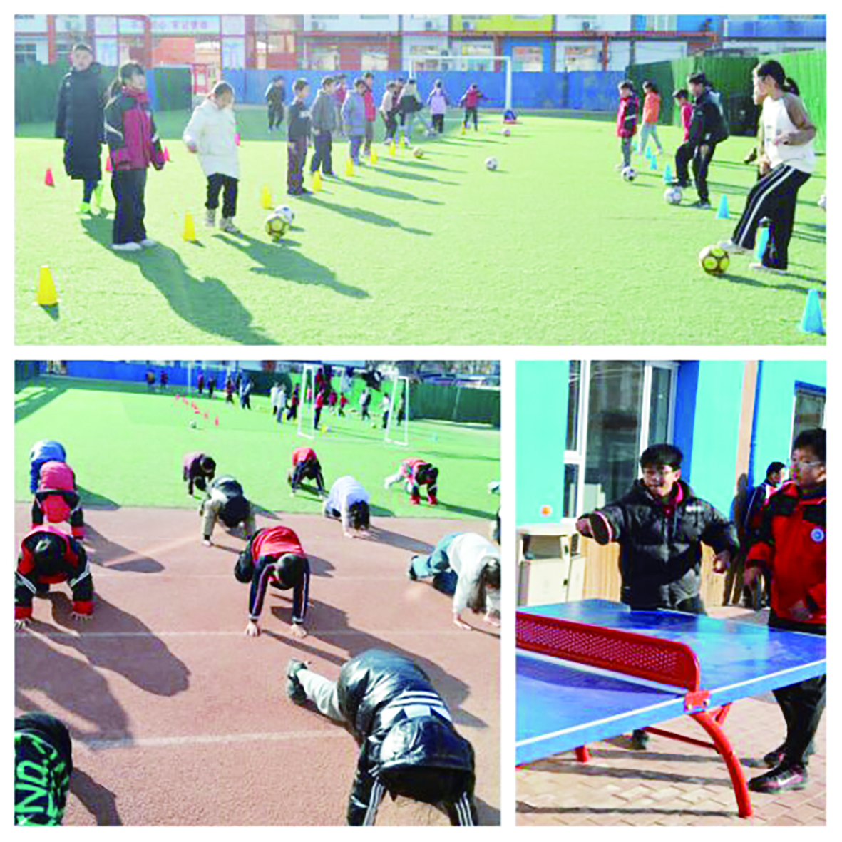 坚持体育强身,全面落实“1530”课间微改革和“每天锻炼两小时”要求,创新趣味体能操、传统游戏,打造年级体育特色课程,不断增强学生体质。加大学校体育设施建设投入,开展阳光体育运动,举办中小学田径赛、“奔跑吧·少年”青少年篮球赛、足球赛等赛事,推动学生积极参与体育锻炼。