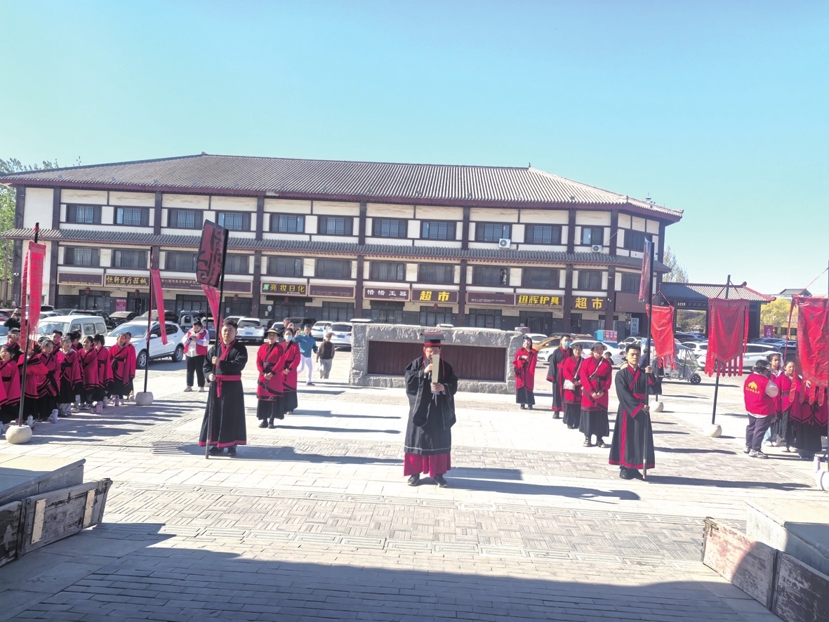在孙敬学堂传统文化研学基地,一场汉服礼仪课正在进行。研学导师身着曲裾深衣,示范“敬茶礼”的每一个细节:“双手持杯,表达对长辈的敬意。”参加研学的小学生们小心翼翼地将茶盏递给同伴,动作虽显生涩,眼神却格外专注。这里还开设了活字印刷、内画鼻烟壶、草木染等非遗课程。
