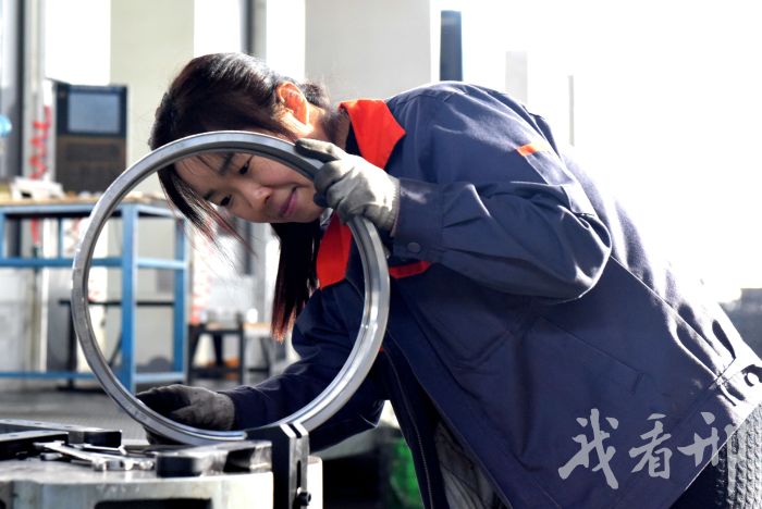 ↑利用立式数控车床,工人进行产品检查检测。叶晓强摄