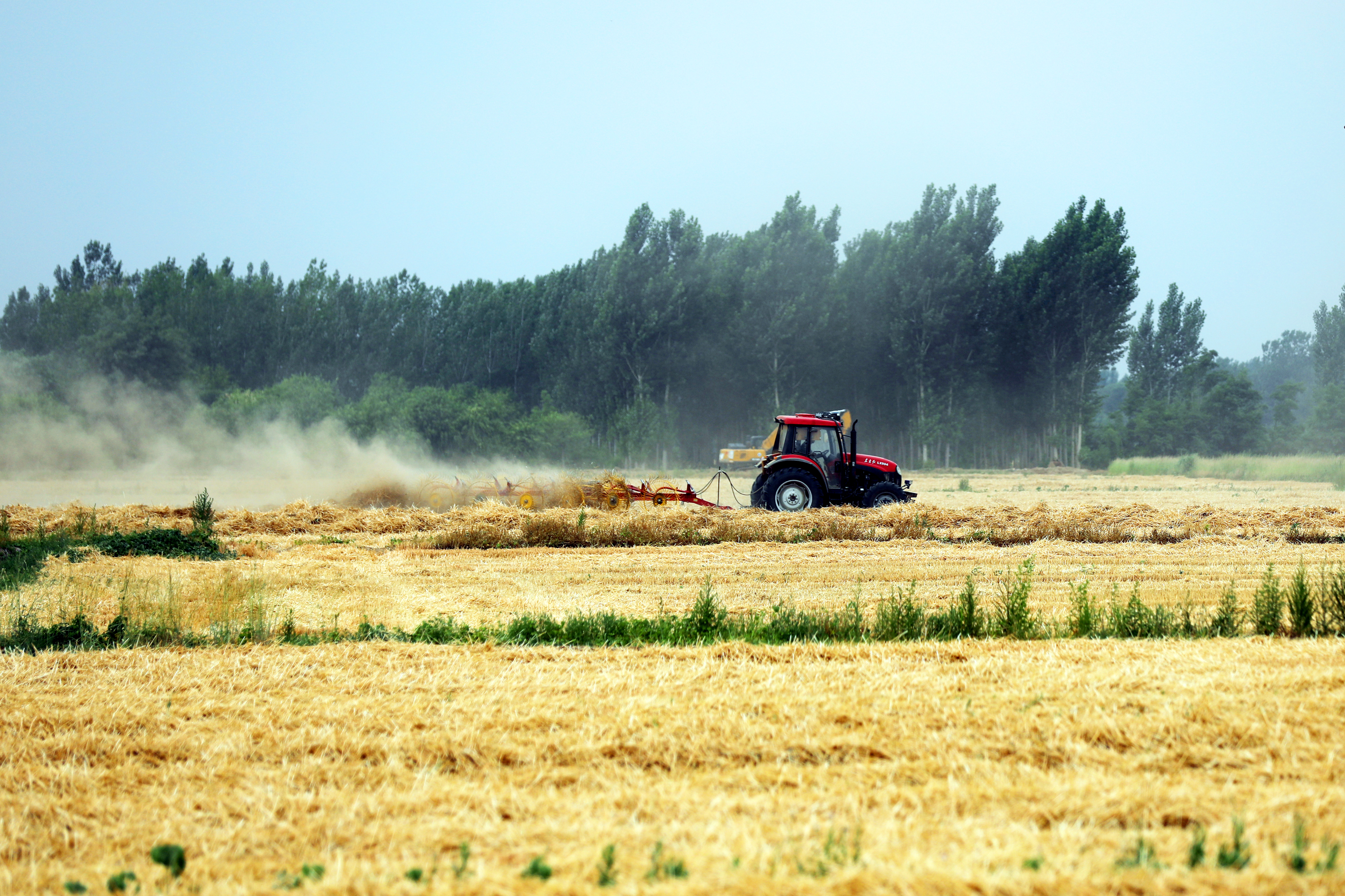 金色麦浪里,农机手的安全帽在阳光下反光,他们紧盯操控屏,双手熟练地调整机械臂,确保麦粒精准入仓。汗水顺着脖颈滑进衣领,但他们操控机械的专注丝毫未减,这群“麦田里的舞者”正以分秒必争的节奏,与时间赛跑。不远处,秸秆打包机同步启动,传送带将收割后的秸秆卷入压捆装置,转眼间便将散落的秸秆化作整齐的草垛。切割、脱粒、运输、打包,整套流程行云流水,勾勒出机械化麦收的震撼画卷。