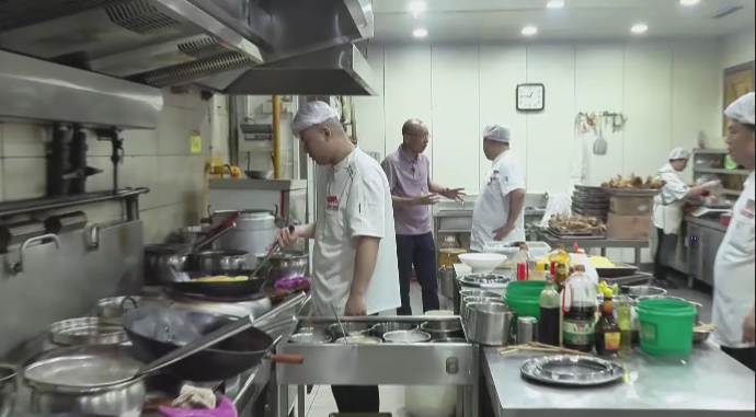 石家庄市深泽县谷养元餐厅厨师长 段艳鹏:对,炸完食材倒出来,有人回收。