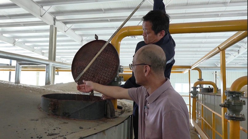 河北丝溉化工有限公司董事长 荣浩:这是80吨,一个罐子就80吨,那个高的那几个是100吨的。这个车间里边一次性的2000吨,如果要是沉降处理两次的情况下,一天处理4000吨。