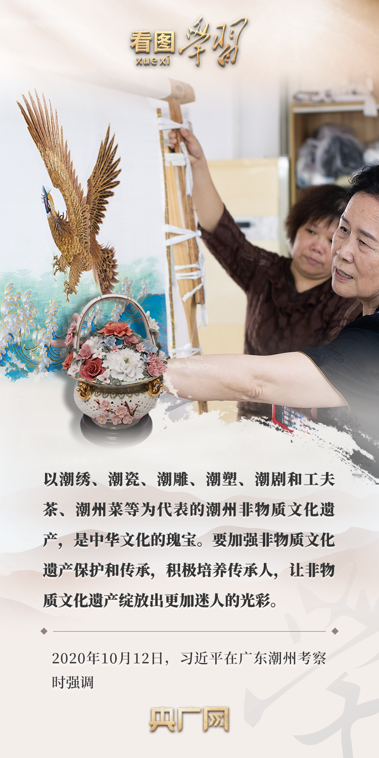 从古典民族史诗《格萨(斯)尔》到潮绣、潮瓷、潮剧和工夫茶,再到汉中藤编、常德丝弦……在各地考察调研时,习近平总书记曾多次就文化传承发展、非物质文化遗产保护作出重要指示,强调要“让非物质文化遗产绽放出更加迷人的光彩”。