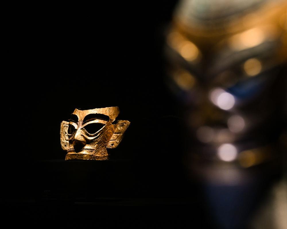 △三星堆博物馆新馆展出的金面具