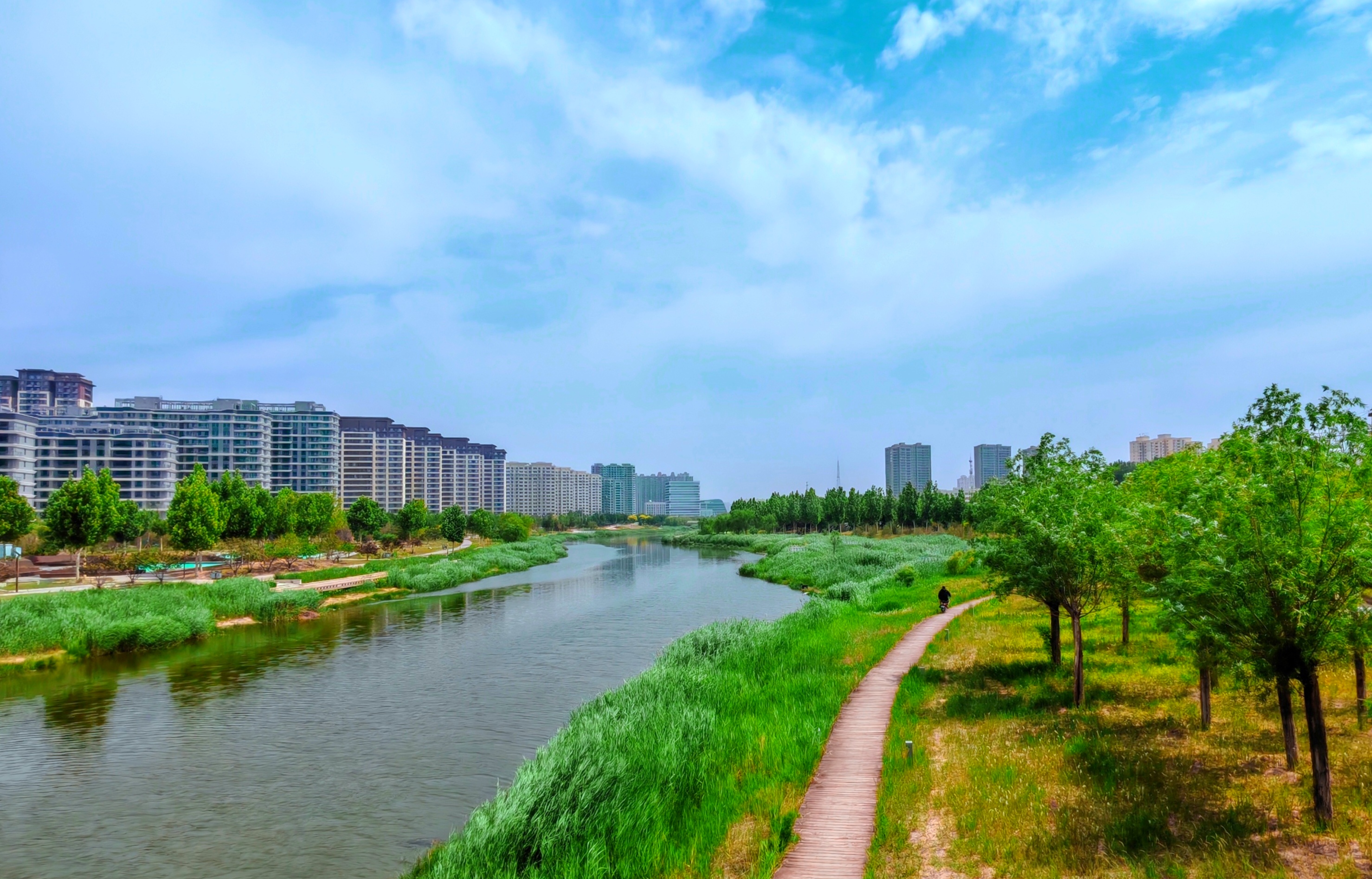 仲夏时节,衡水市区吴公渠生态公园内,绿树成荫、水波荡漾,景色怡人。
