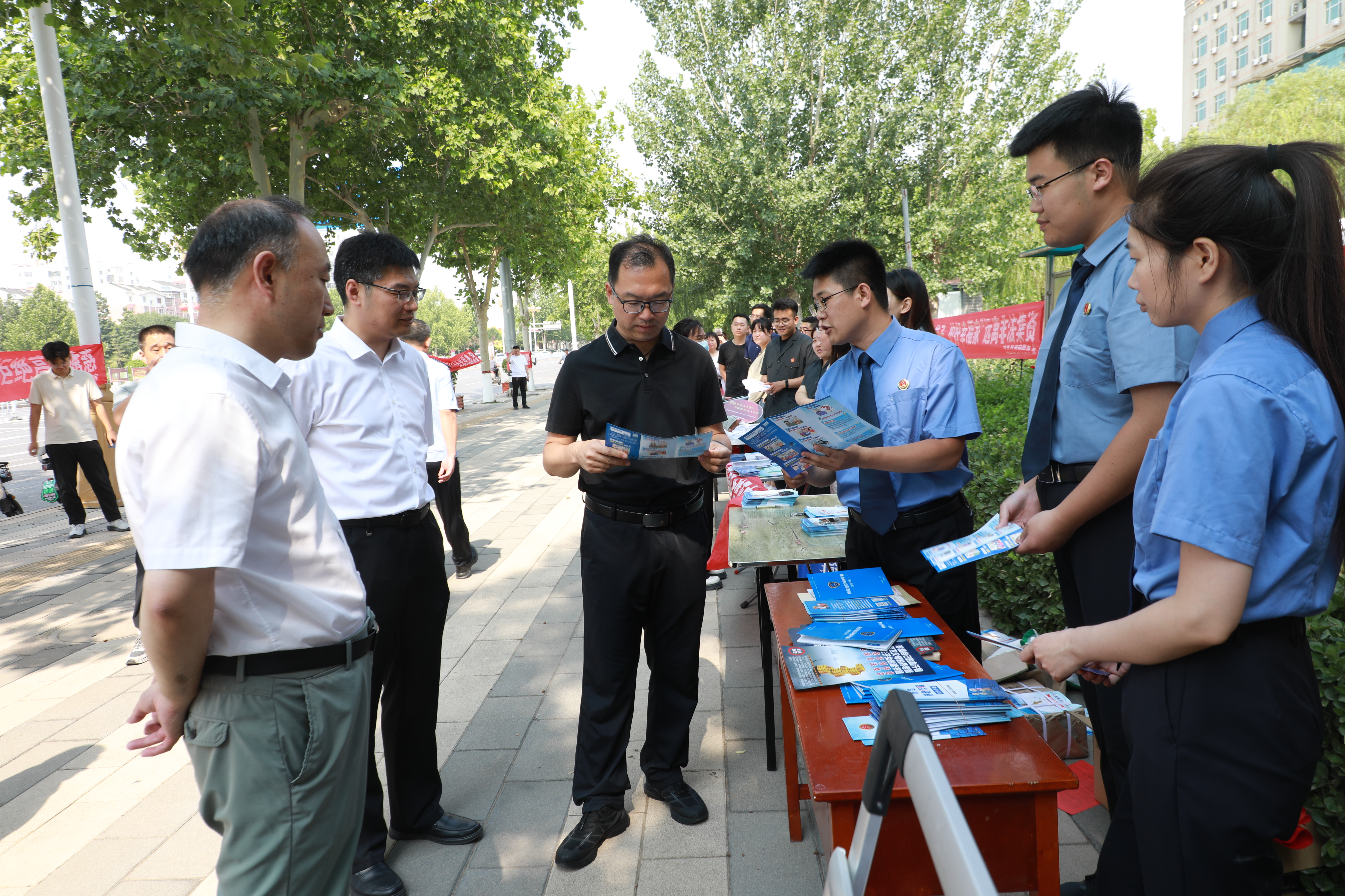 活动现场,各单位通过悬挂宣传横幅、摆放宣传展板、设置咨询台等形式,吸引了众多群众驻足。工作人员热情地向过往群众发放宣传资料,详细讲解非法金融活动的常见形式、危害及防范方法,提醒群众要警惕“高额回报”“快速致富”等虚假承诺,不轻易相信陌生人的投资建议,避免陷入非法金融活动的泥潭。同时,针对老年人、青少年等易受骗群体,工作人员用通俗易懂的语言和生动形象的案例,向他们普及金融知识和防骗技巧。此外,各银行和保险机构结合机构特点,引导群众树立正确的投资理念。