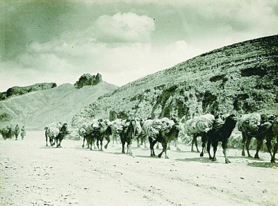 20世纪二三十年代,张库大道上驮着皮毛的骆驼队。图片来源:张库大道博物馆