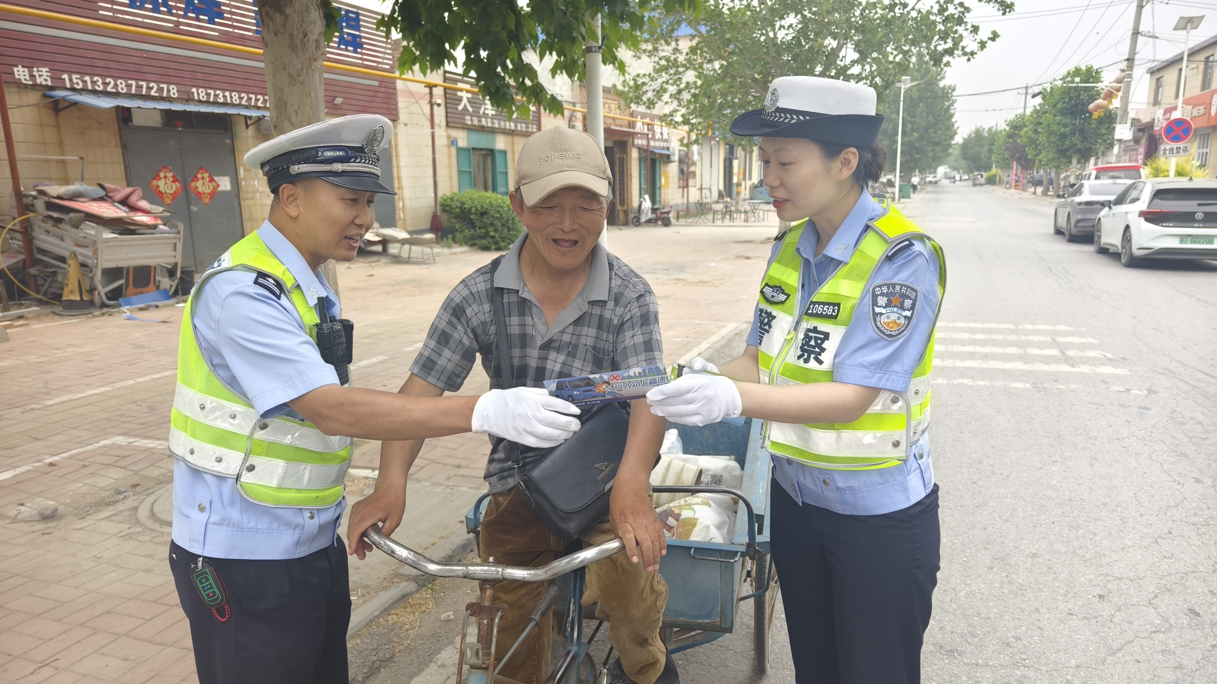 随着暑期来临,行人违规进入高速公路风险隐患加剧。为切实保障人民群众生命财产安全,高速交警衡水大队主动作为,于近日深入辖区沿线邓庄镇,开展“珍爱生命,行人勿上高速”主题交通安全宣传活动,以立体化宣教模式筑牢道路安全防线。