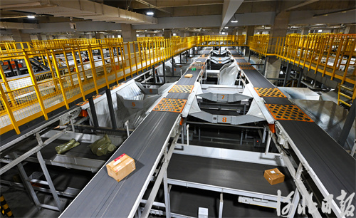5月22日,位于固安县的申通快递华北转运中心全自动分拣流水线在高速运转。河北日报记者赵永辉摄
