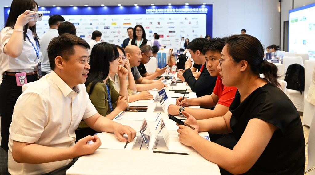 6月18日,在2025年京津冀氢能、生物医药产业链项目对接会上,与会人员洽谈合作事宜。 河北日报记者 赵永辉摄