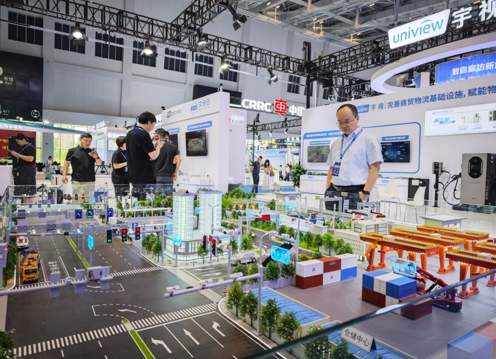 6月16日,嘉宾在2025年中国·廊坊国际经济贸易洽谈会智慧物流技术与装备展区参观。新华社发(刘向摄)