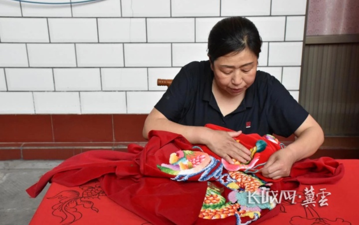 太行山坳里的武安市贺进镇,南街村的石板路被岁月磨得发亮。走进村里,“最美家庭”贺彦霞的家,门帘比别家要显眼——大红色的门帘上绣着寓意吉祥的牡丹、灵动的飞鸟,栩栩如生。“这手艺是我娘传下来的,早先就图个自家看着喜庆,没想成了大伙儿的‘增收法宝’。” 贺彦霞坐在堂屋剪布料,银针在指缝间闪着光,“你看这针脚,当年我娘教我时,说要像麦粒儿一样匀溜。”