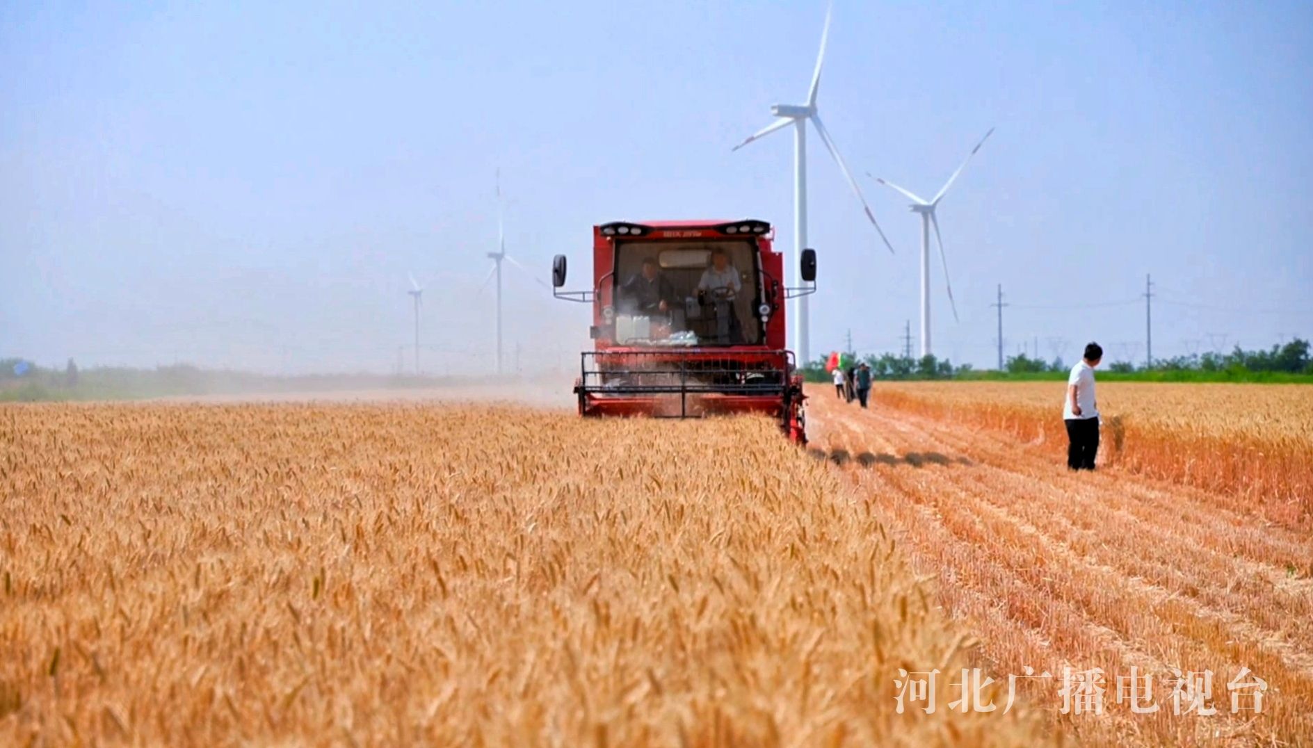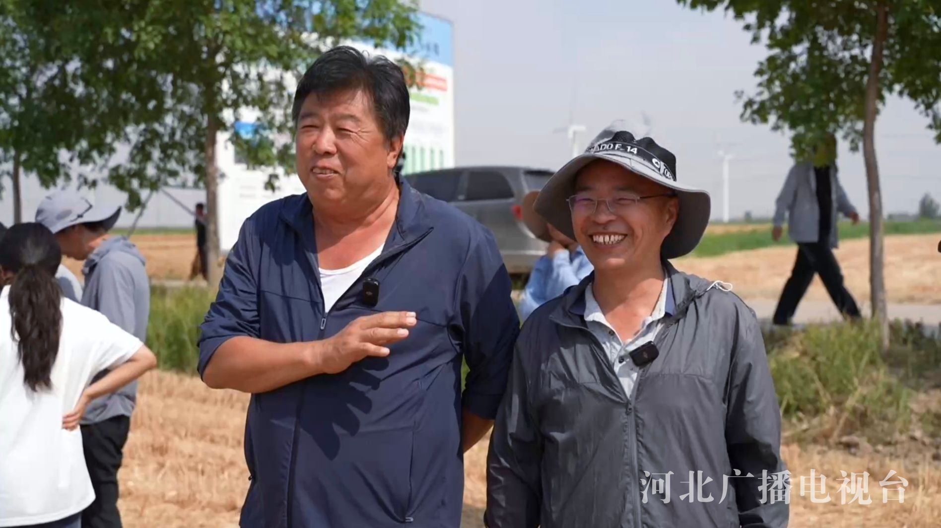 张志清(左)和河北农业大学教授刘冬成(右)在麦收现场