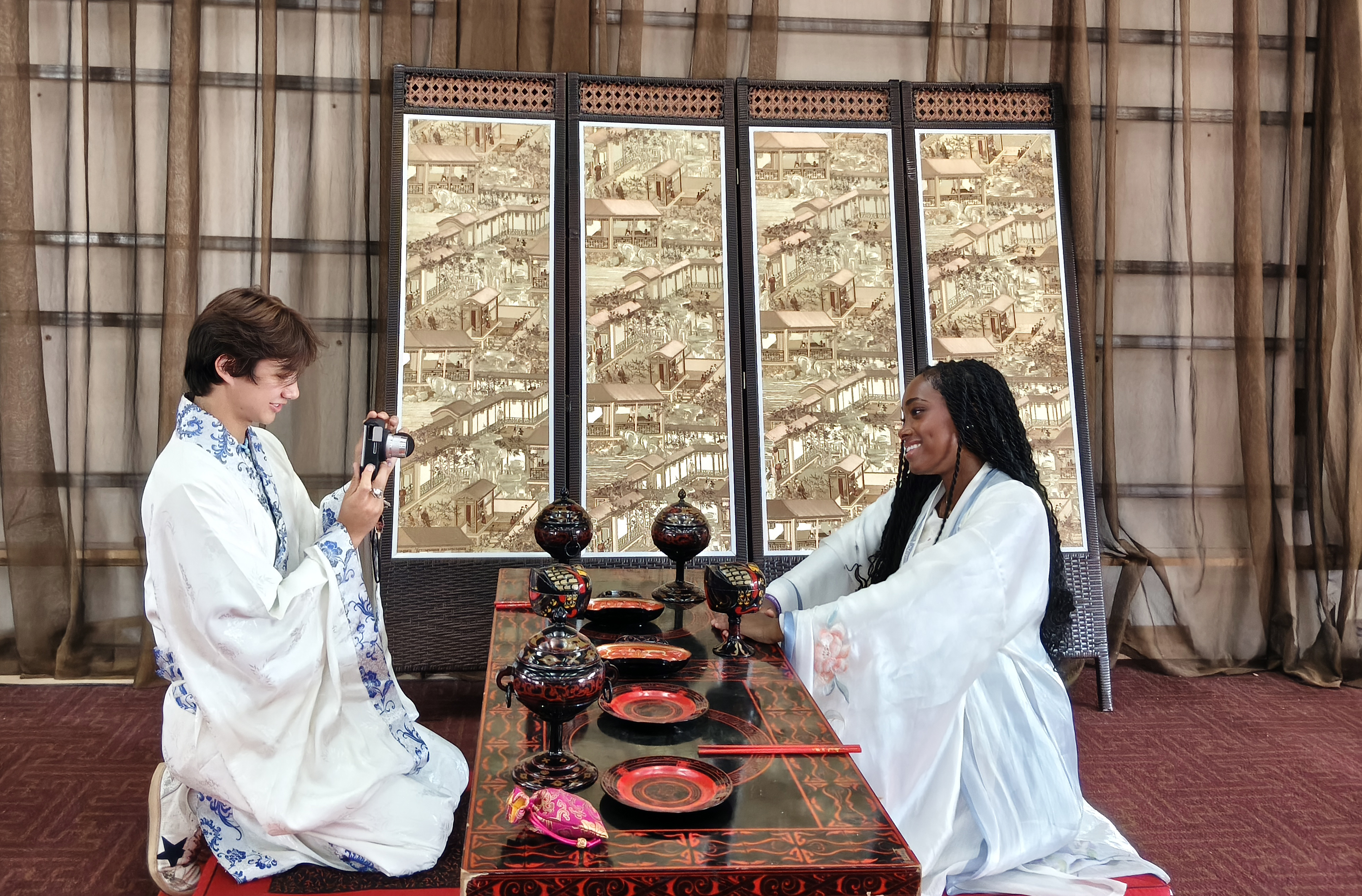活动收官当日,交流团前往滨湖新区孙敬学堂,身着汉服学习躬身、作揖等中华传统礼仪。美国得克萨斯州的学生艾娃·加西亚·霍尔曼(Ava Garcia Holman)表示:“传统礼仪动作优雅且富有哲学内涵,让我对中国文化有了更立体的认识。”