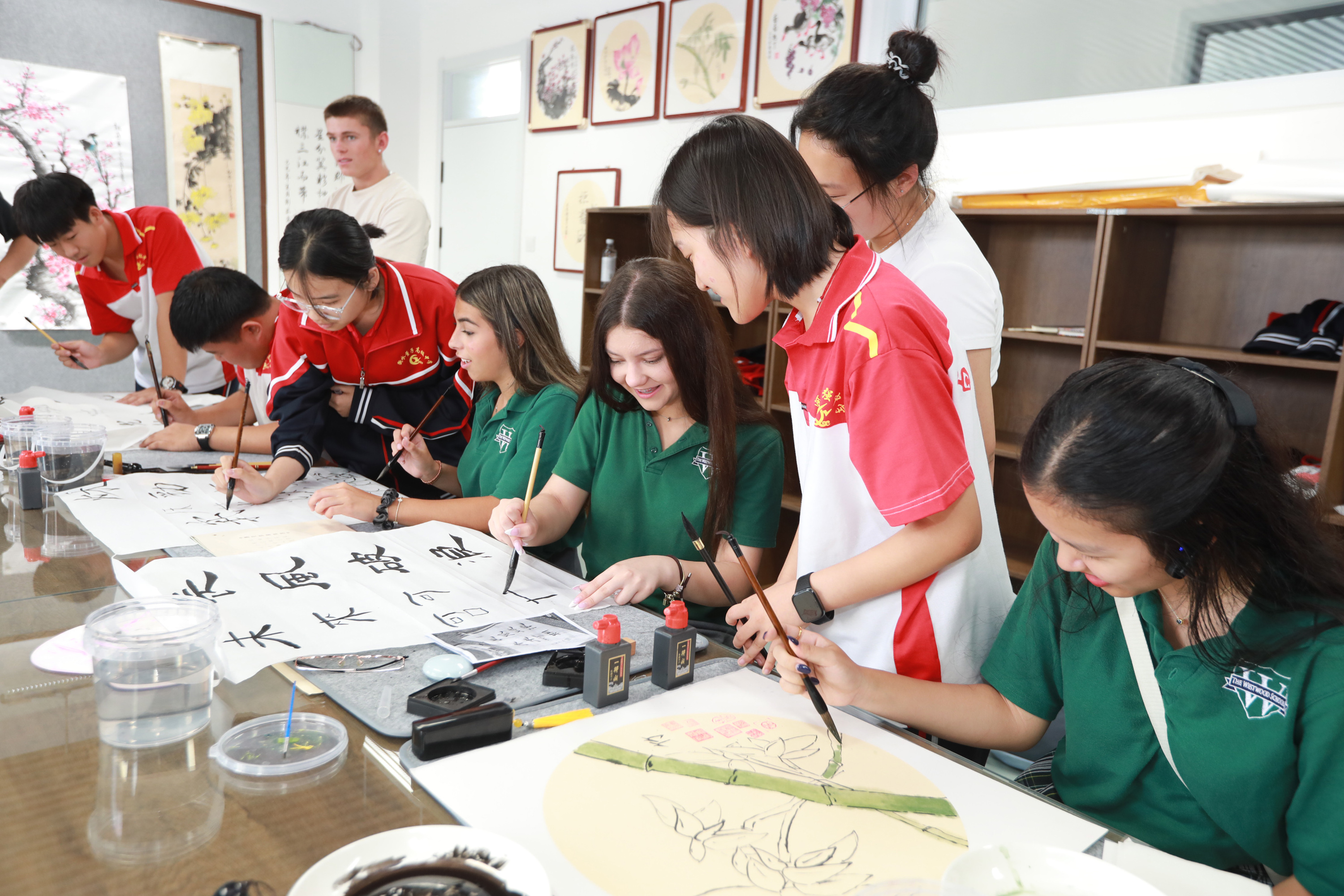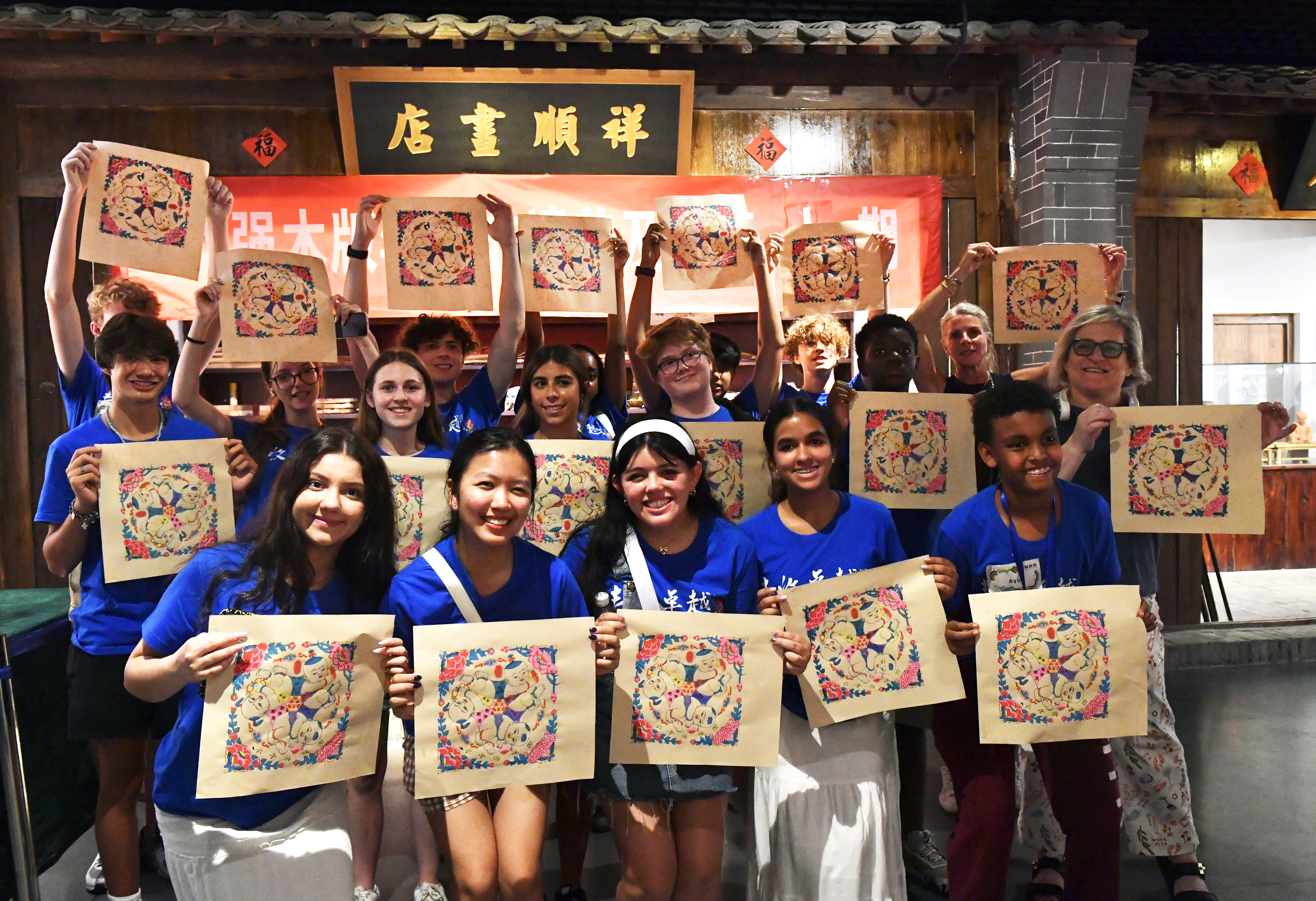 这期间,由来自美国得克萨斯州、加利福尼亚州等地的50余名中学生和教师组成的交流团,前往衡水市的桃城区、武强县、枣强县、滨湖新区等地,参与武强年画拓印非遗体验、枣强中学课堂互动教学、孙敬学堂传统礼仪研习等沉浸式文化实践活动,感受了中华传统文化魅力与当代中国教育的发展成果,并介绍了美国校园文化,在跨文化互动中加深了中美青少年间的友谊。