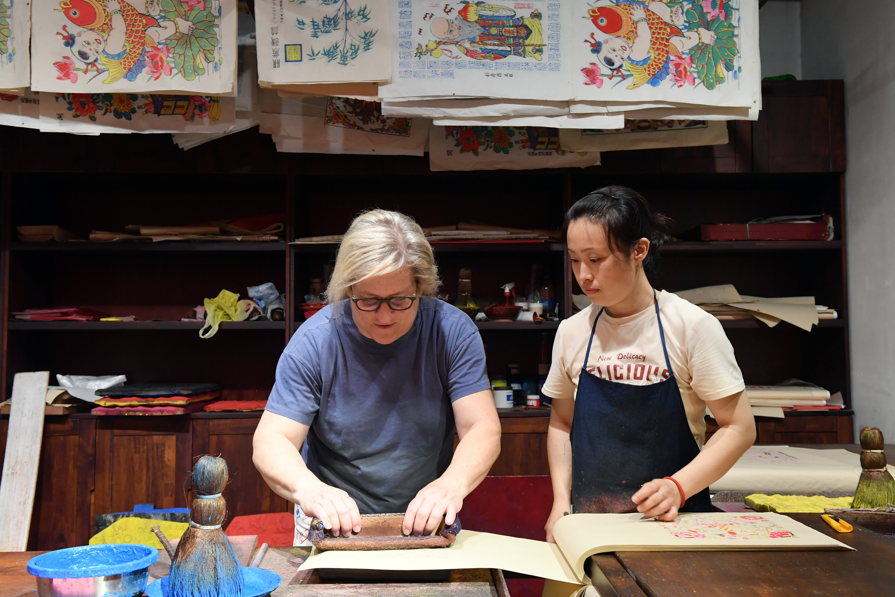 在武强年画博物馆体验年画印制技艺。