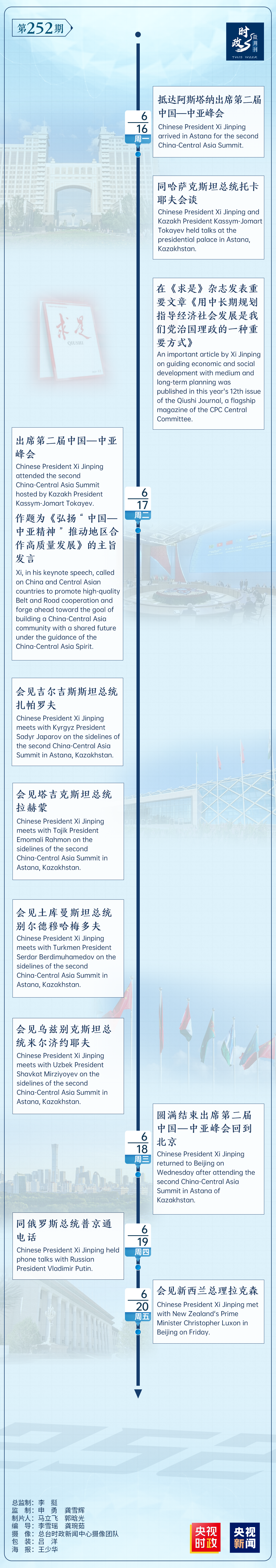 来源:央视新闻客户端编辑:贾扬阳 来源:央视新闻客户端 原标题:时政微周刊丨总书记的一周(6月16日—6月22日) 点赞 +1 微博 微信 我要评论 发布 相关推荐 时政微周刊丨总书记的一周(4月13日—4月19日) 要闻 21小时前 时政微周刊丨总书记的一周(4月6日—4月12日) 要闻 04-13 时政微观察丨服务业如何高质量发展?总书记提出新要求 时政 04-10 时政微周刊丨总书记的一周(3月30日—4月5日) 要闻 04-06 时政微周刊丨总书记的一周(3月23日—3月29日) 要闻 03-30 时政微观察丨从总书记雄安行,读懂实干精神 时政 03-27 时政微观察丨从总书记雄安行,读懂实干精神 关注 03-25 热门 一天 三天 一周 1 4起整治形式主义为基层减负典型问题,公开通报! 2 湖畔诵经典 花海品书香——衡水市全民阅读热潮涌动 3 七百株百年牡丹在阜城县霞口镇安新家 4 【强国复兴有我·网上展示】十年耕读传书香 匠心筑梦润湖城 ——记衡水市优秀阅读推广人端木杉 5 河北衡水:书香浸润家园,点亮文化生活 6 央媒省媒聚焦衡水纵深推进协同发展 7 衡水市全民阅读活动周暨五一惠民书市系列活动启动 8 国安教育入人心 金融护航守平安——张家口银行衡水饶阳支行开展全民国家安全教育日宣传活动 9 武邑:土地流转生金 油菜花开满乡 10 【乡村行 看振兴】倪庄村的三条“振兴路” 1 衡水文旅“春意浓”:多元产品激活春日市场 2 千年塔下诵经典! 衡水市景县举办世界读书日主题活动 3 衡水市冀州区开展“阅见书香之美 共筑阅读之城”春季书香节主题活动 4 4起整治形式主义为基层减负典型问题,公开通报! 5 衡水市2026年新时代乡村阅读启动仪式在武邑举办 书香赋能乡村振兴 6 十八腾骁 驰骋向远——武邑宏达实验学校高二年级第三届成人礼圆满举行 7 【新思想引领新征程】推进数字中国建设 打造高质量发展新引擎 8 衡水市原创歌曲优秀作品展演在安平杨屯唱响 9 阜城县6万余亩西瓜喜获丰收 科技赋能助农增收 10 2026年京津冀“衡实杯”马术赛完赛 1 零碳引领 绿色同行 衡水市“一起益企 订单式服务”绿色低碳发展 专题活动成功举办 2 《互联网平台价格行为规则》正式实施 明确禁止“大数据杀熟” 3 武邑籍北京声乐老师为衡水建市30周年谱写赞歌 4 阜城县古城镇:人居整治 “大拉练” 乡村治理 “加速度” 5 景县王千寺镇中心小学举办校园科技节活动 6 普及国安知识 筑牢思想防线 武邑县举办全民国家安全教育日集中宣传活动 7 【小牛大凯帮办团】衡水:露天垃圾池拆了 崭新垃圾桶“上岗” 8 【最美夕阳红】琴弦伴岁月 国粹润夕阳 ——衡水退休教师刘存水奏响晚年幸福曲 9 “机械联动+人工补扫” 衡水主城区打响“飞絮治理战” 10 衡水市第三人民医院开展2026年全民国家安全教育日宣传教育活动 广告 广告 广告 24小时 1 武邑县多部门联合开展“全民阅读活动周”主题活动 2 农行衡水分行:筑牢反诈“防护网” 守护百姓“钱袋子” 3 【乡村行 看振兴】倪庄村的三条“振兴路” 4 衡水中学举行2026校园艺术节文艺汇演 5 第十四届全国班主任年会暨衡水中学德育工作现场观摩会举办 6 衡水市全民阅读活动周暨五一惠民书市系列活动启动 7 十八而志正当时 风华正茂少年郎 衡水中学举行2024级学生成人典礼 8 阜城农商银行“多维发力”开展国家安全教育日宣传活动 9 阜城农商银行:深耕“指尖金融” 打通便民服务“最后一公里” 10 沧州银行衡水冀州支行:暖心上门解民忧 金融服务有温度
