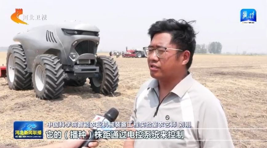 我们现在悬挂的这台播种机,它的(播种)株距通过电控系统来控制,我们的株间距能够控制误差在0.5公分以内,与传统的农机相比,避免了大小苗的发生。