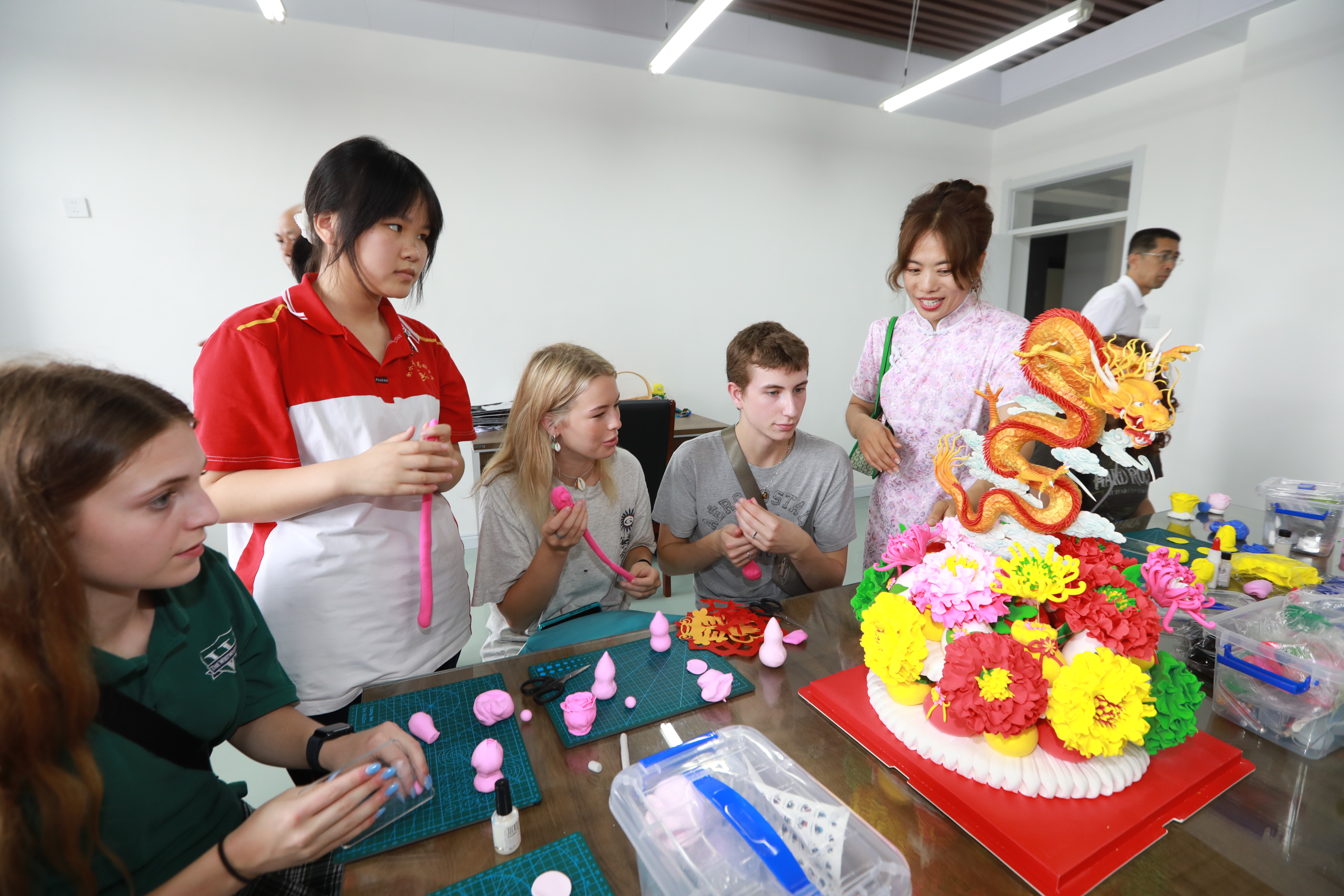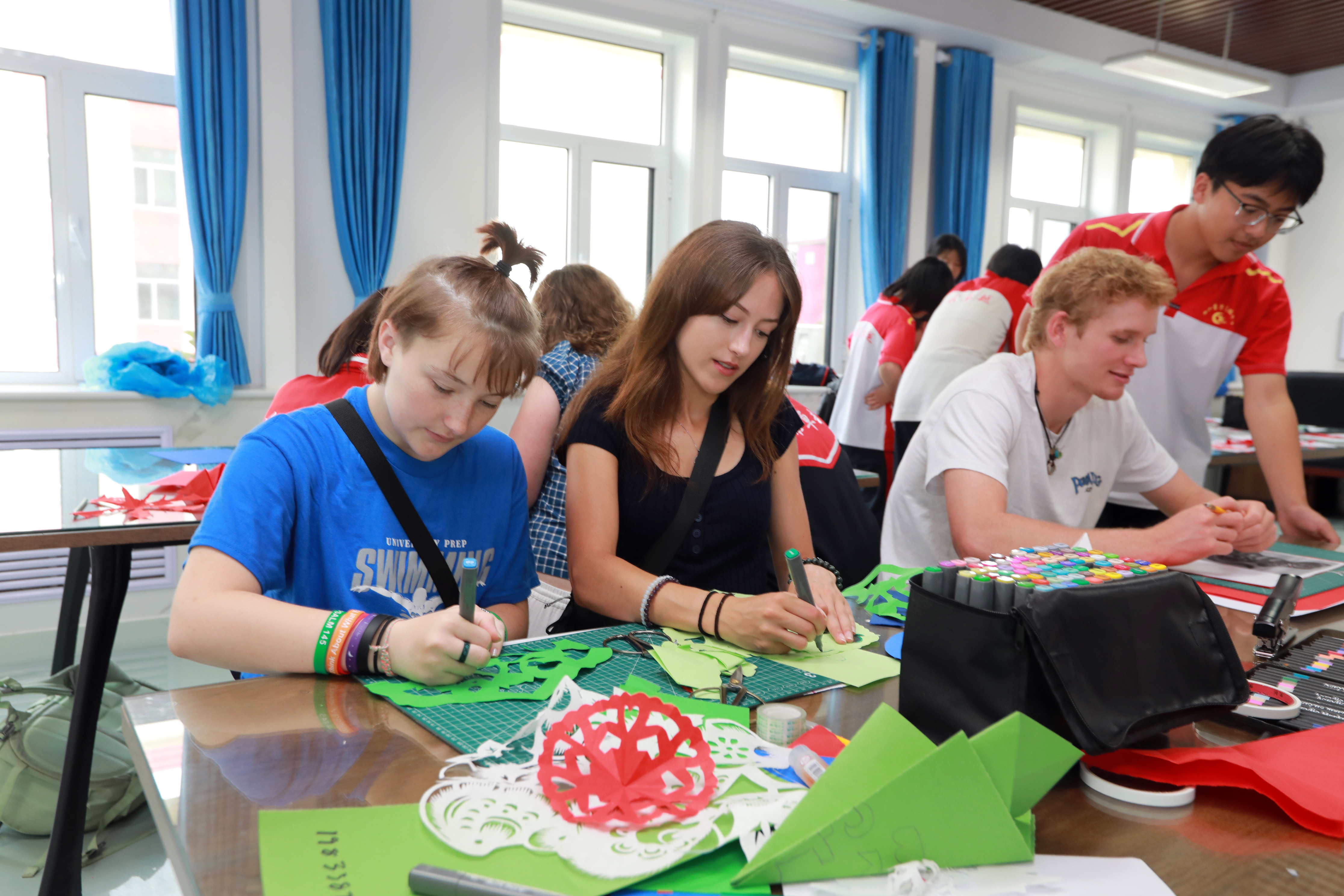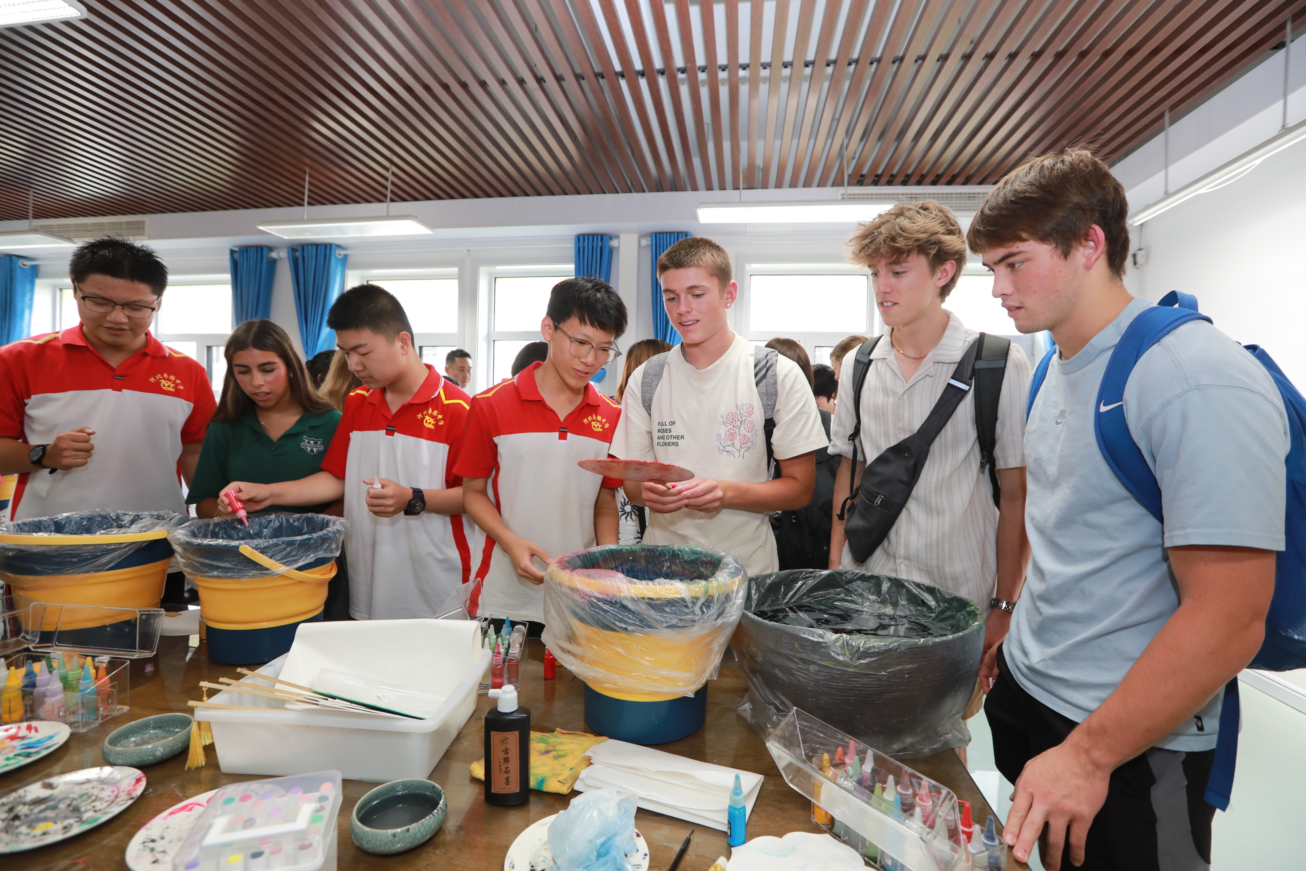 日前,来自美国得克萨斯州、加利福尼亚州等地的50余名中学生和教师组成的交流团,到衡水市的桃城区、武强县、枣强县、滨湖新区等地,进行了为期三天的相互交流学习。期间交流团成员参与剪纸、面塑、年画等非遗体验感受了中华传统文化魅力与当代中国教育的发展成果,并介绍了美国校园文化,在跨文化互动中加深了中美青少年间的友谊。