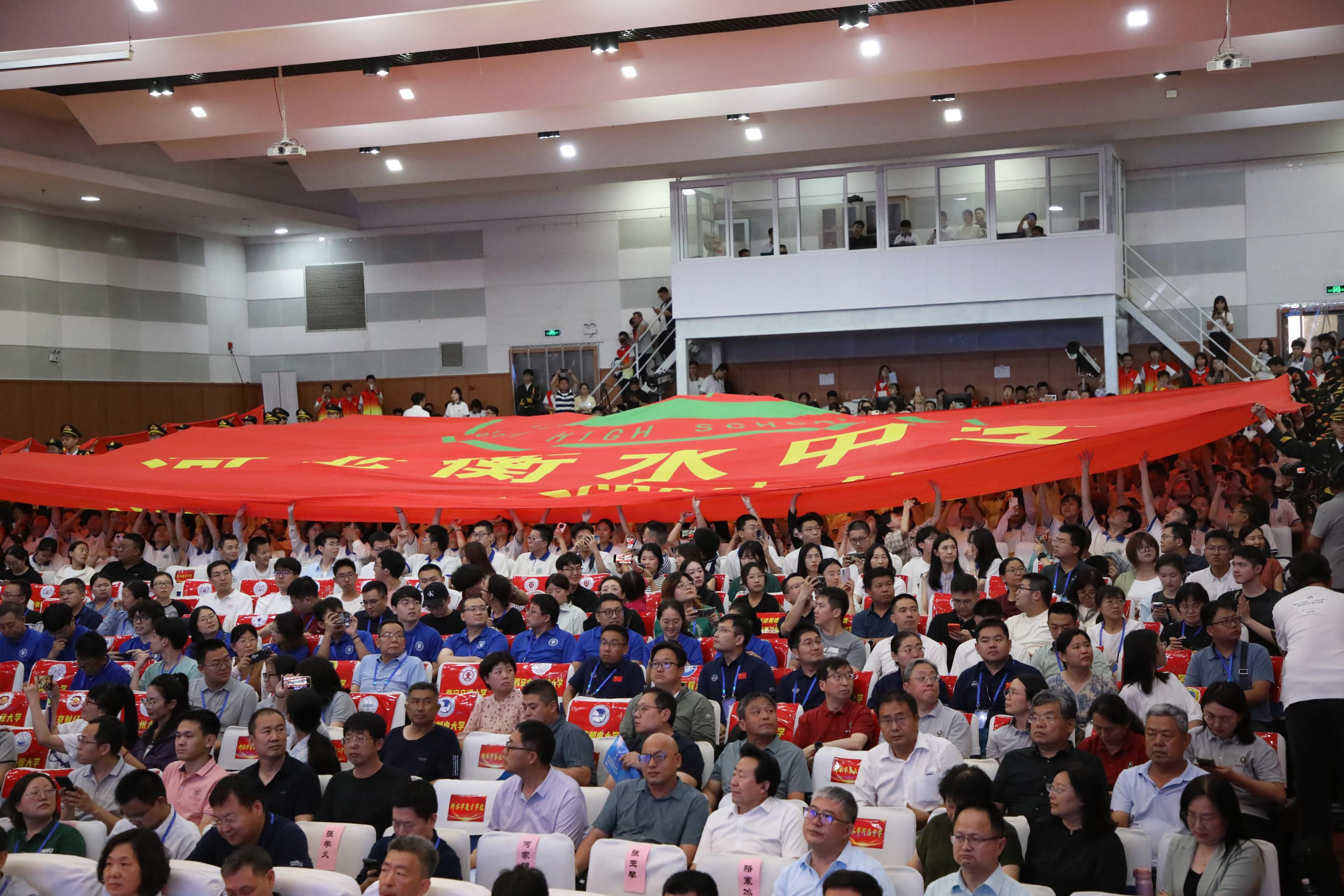 典礼正式开始,学校护旗队队员亮出校旗。当校旗在观众席上掠过,学生们纷纷伸出双手,触摸校旗,用心感受旗帜上的每一丝、每一缕鲜红。随后播放的成长纪录片《光阴的故事》,再现了学生们三年的高中生活:早操口号震天动地,课堂自习紧张高效……一幅幅熟悉的画面见证了高三学子的纯粹时光和灿烂年华。随后,衡水中学党委书记郗会锁、校长郭春雨与其他校领导分别上台为毕业生代表颁发毕业证书。学生代表也为辛勤付出的教职工和家长代表献上了鲜花,表达对母校、老师和家长的感恩之情。