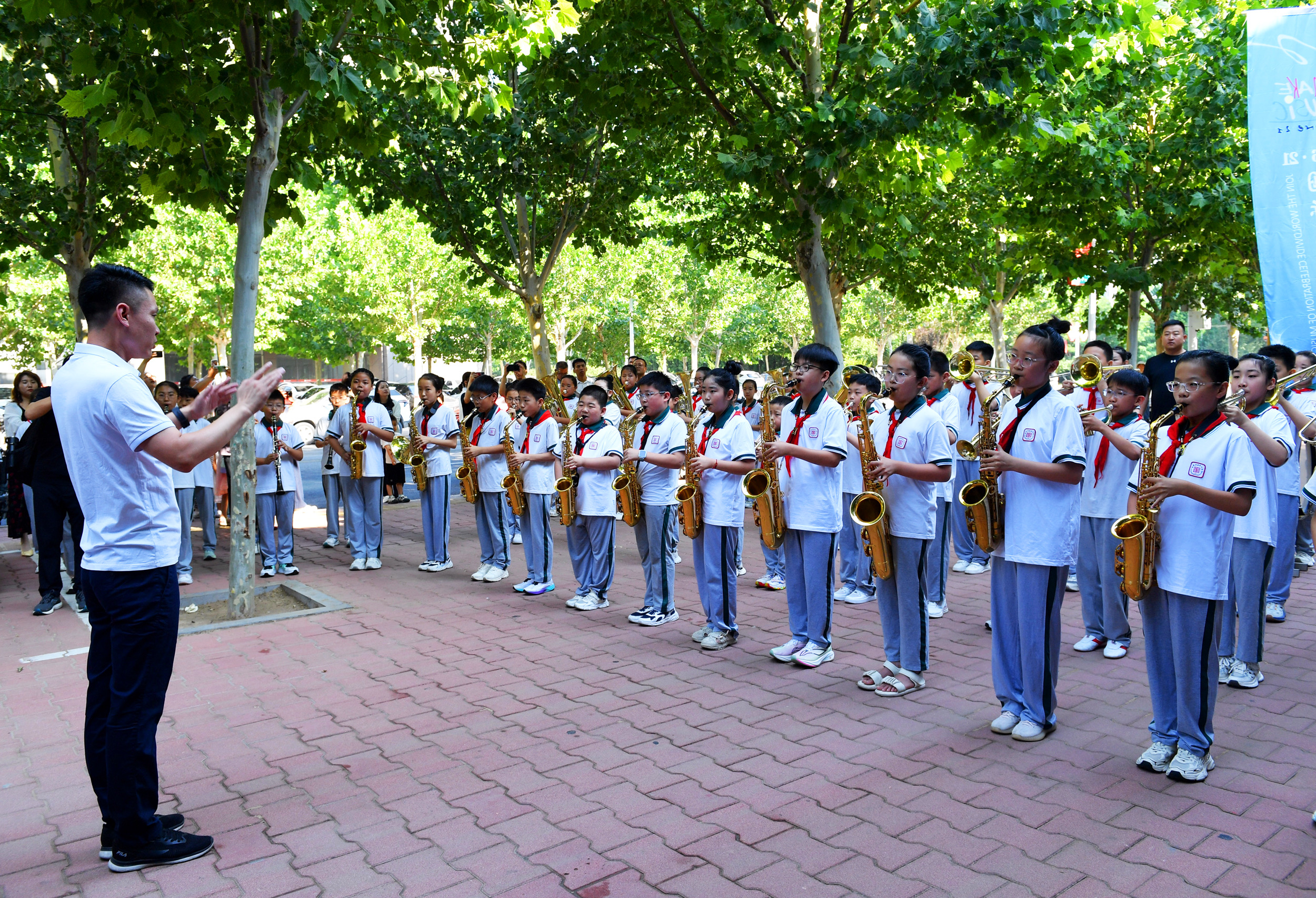 当日,形式多样的子活动有序开展,全方位展现音乐文化魅力。“乐器进校园”活动首站在府兴小学举行,与会嘉宾与师生共同参观乐器教育成果展。现场,学校萨克斯、古筝、陶笛等乐器社团的学生,在指导教师带领下进行专业演奏,明快的节奏、和谐的乐声交织,充分展现出青少年对音乐的热爱与天赋,热烈的氛围为县域音乐教育发展注入新活力。