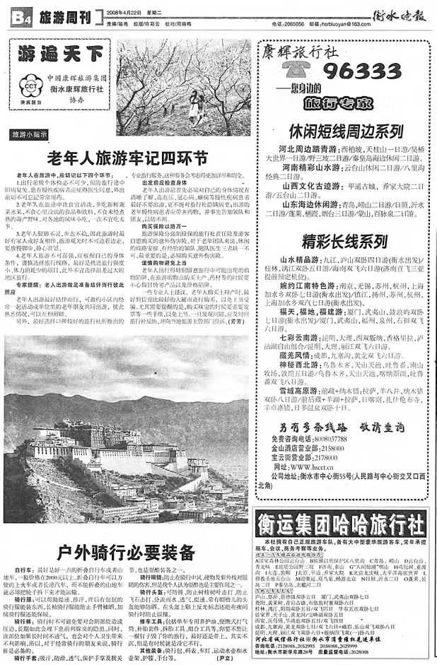 旅游旺季到来,需要积极做好准备的有很多单位和部门,尤其是“运输口儿”。2000年7月15日《衡水日报》4版,记录下当年暑期来临前各个部门的“大显神通”:铁路每天增开14对长途临时客车,将8对固定列车线路延长到旅游城市;公路运输部门根据市场需要及时调整班线和班次;民航再次宣布了对学生教师实行机票打6折优惠的政策。