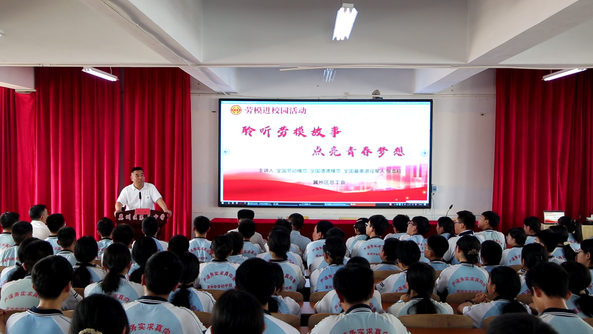 6月25日,由冀州区总工会主办的“聆听劳模故事 点亮青春梦想——劳模进校园”活动走进冀州区第三中学,全国劳动模范、全国道德模范、全国最美退役军人张志旺应邀带来了一场成长与奋斗、引领与担当的主题宣讲。全校200余名师生齐聚一堂,共同聆听榜样的声音。