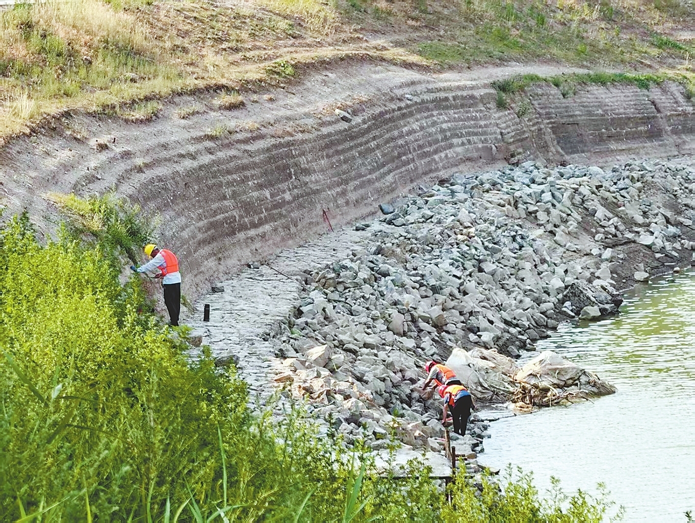夏日的大运河畔,华家口夯土险工段修缮现场一片繁忙——施工人员正将沙土运送到河堤底部,通过铺设浆砌石护坡,对夯土险工底部河道进行加固,减少掏蚀情况;半跪在夯土险工旁的工作人员,用小毛刷轻轻扫去坝体缝隙间的浮土,对夯土险工本体掏蚀严重的部位进行封堵。景县文保所所长齐向前介绍,这项秉持“最小干预”原则的修缮工程,正以“修旧如旧”的匠心为古堤夯土险工“舒筋活络”。