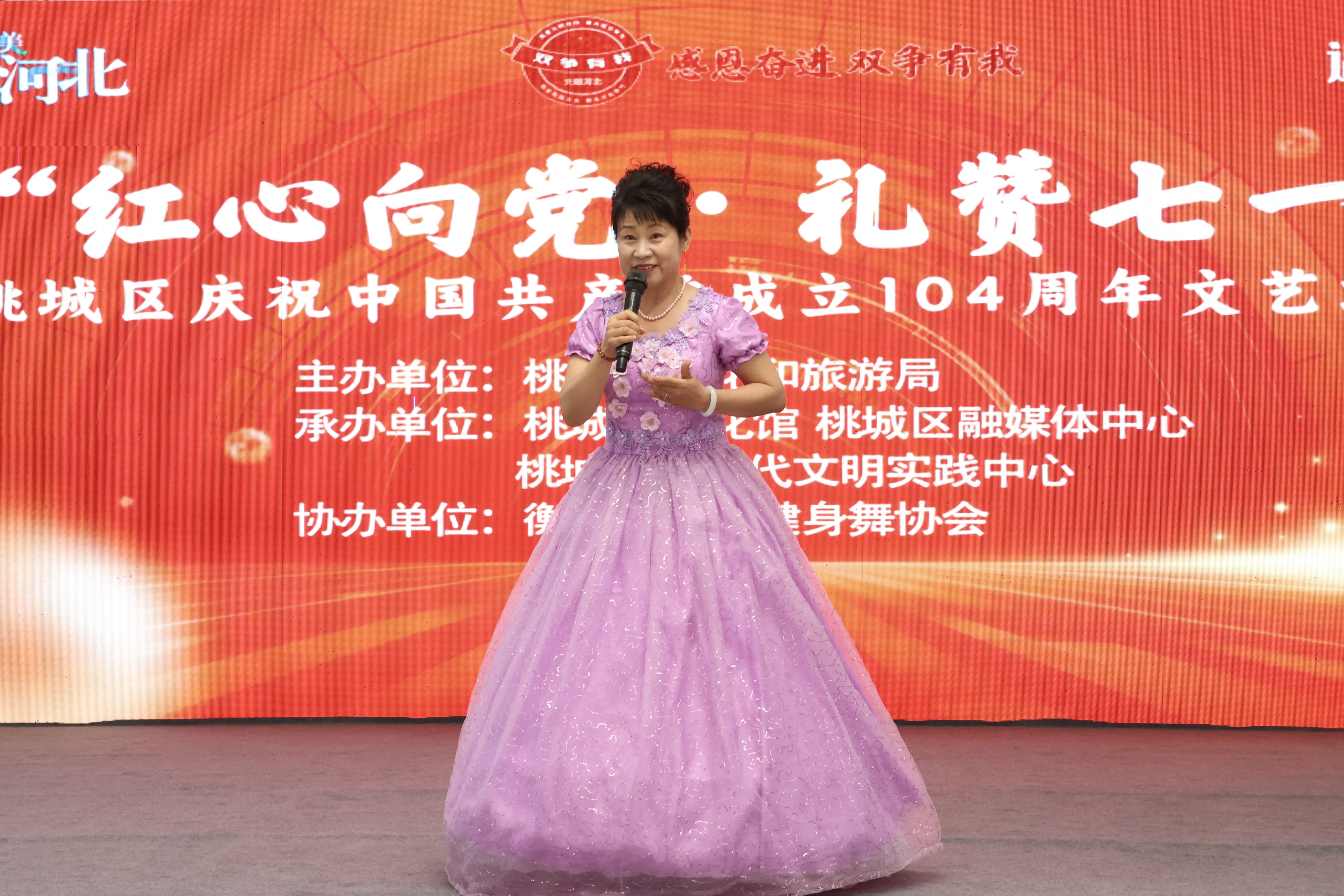 为庆祝中国共产党成立104周年、丰富群众精神文化生活,6月27日下午,衡水市桃城区“红心向党・礼赞七一”文艺汇演在市区万达广场举办。此次演出由桃城区文化和旅游局主办,桃城区文化馆、桃城区融媒体中心、桃城区新时代文明实践中心承办。