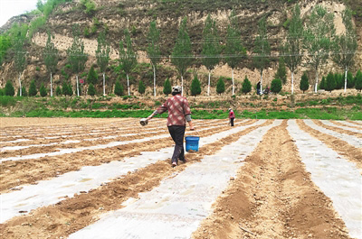 梁家河村民正在知青淤地坝田间劳作。图片来源:人民日报海外版