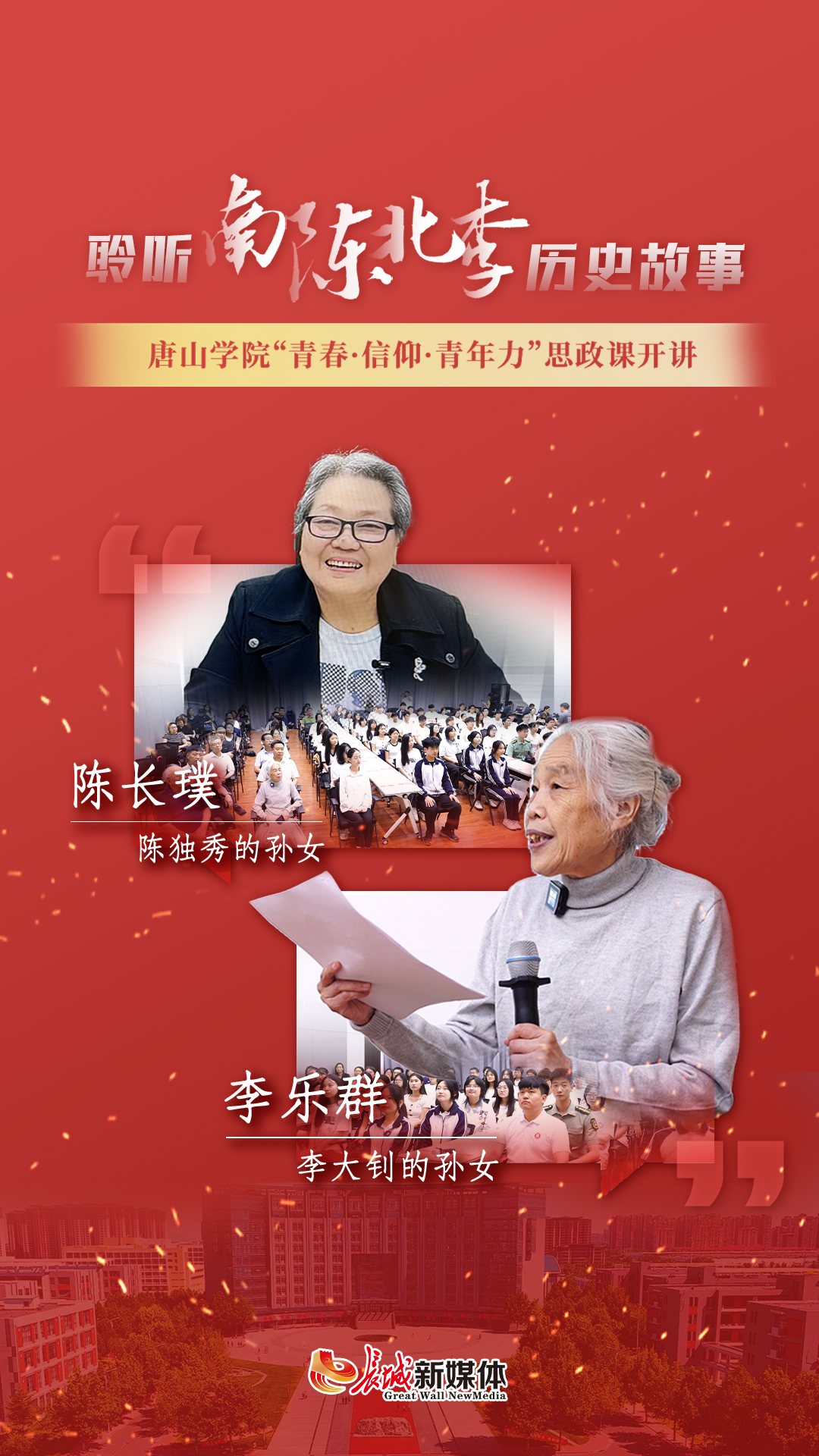 长城网·冀云客户端讯(记者 张光明 宋建军 邢丁 杜宇昕 通讯员 葛昌秋)6月27日,一堂别开生面的“青春·信仰·青年力”思政课在唐山学院开讲。中国共产党创始人陈独秀、李大钊的后人陈长璞、李乐群作为主讲嘉宾,以弘扬伟大建党精神为主题,共话“南陈北李 相约建党”红色历史,100多名师生现场聆听了授课。