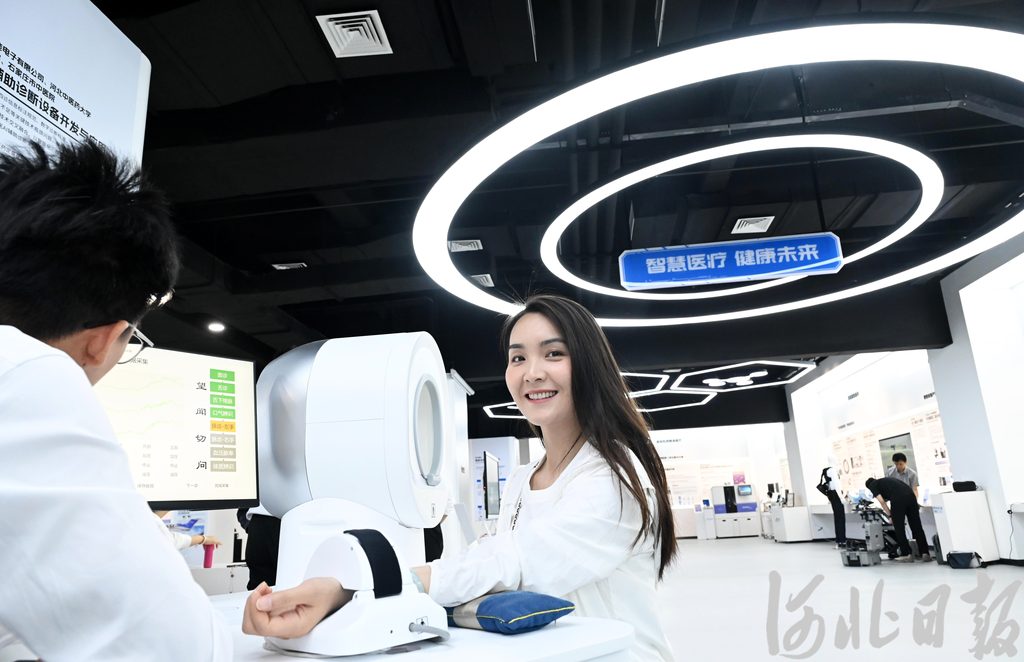 6月14日,第二届雄安未来之城场景汇未来城市场景体验周展厅医疗健康展区内,参观者现场体验中医AI辅助诊疗设备。河北日报记者 刘光昱 摄