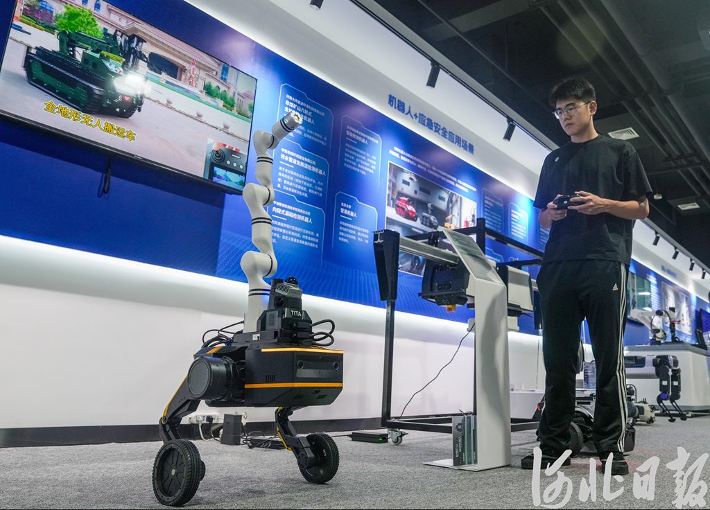 6月8日,雄安未来之城场景汇科创园二楼体验中心内,工作人员正在调试智能机器人。河北日报记者 李东宇摄