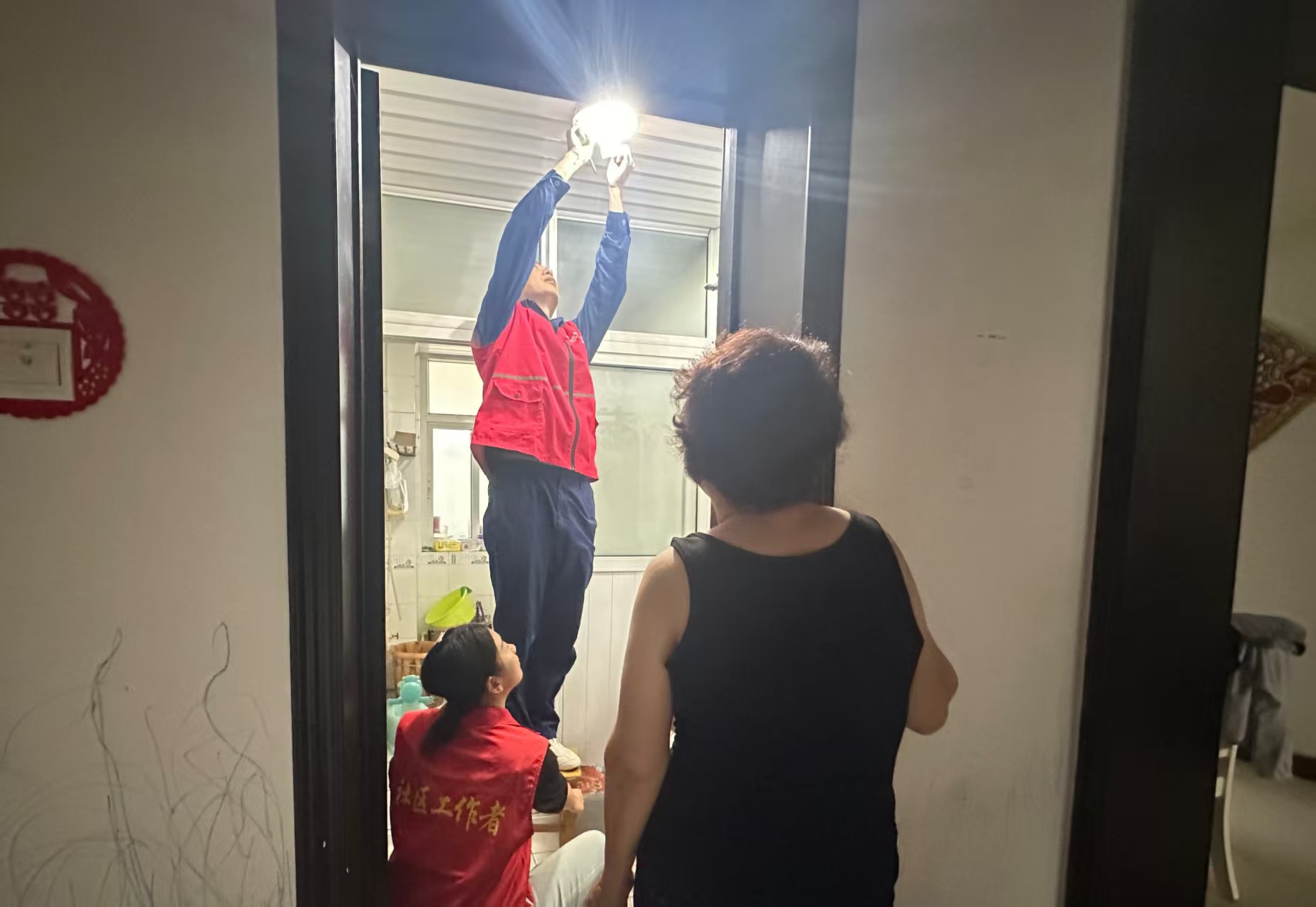 在华润新苑,一户居民家中的灯具不亮了,给夜晚生活带来诸多不便。志愿者们凭借丰富经验,很快找到了灯具故障原因,并进行了维修。