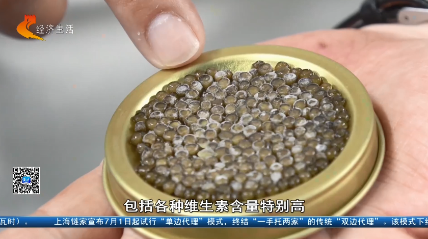 记者 李涛:看到我手中这些黑色珍珠了吗?它就是让世界食客趋之若鹜的顶级美味——鱼子酱,它与鹅肝、松露并称为世界三大珍馐。在西餐厅,它按克计价,一勺就价值不菲,素有“黑色黄金”的美誉。但你可能想不到,这口顶级美味的诞生地,就在我身后的这片鱼塘。