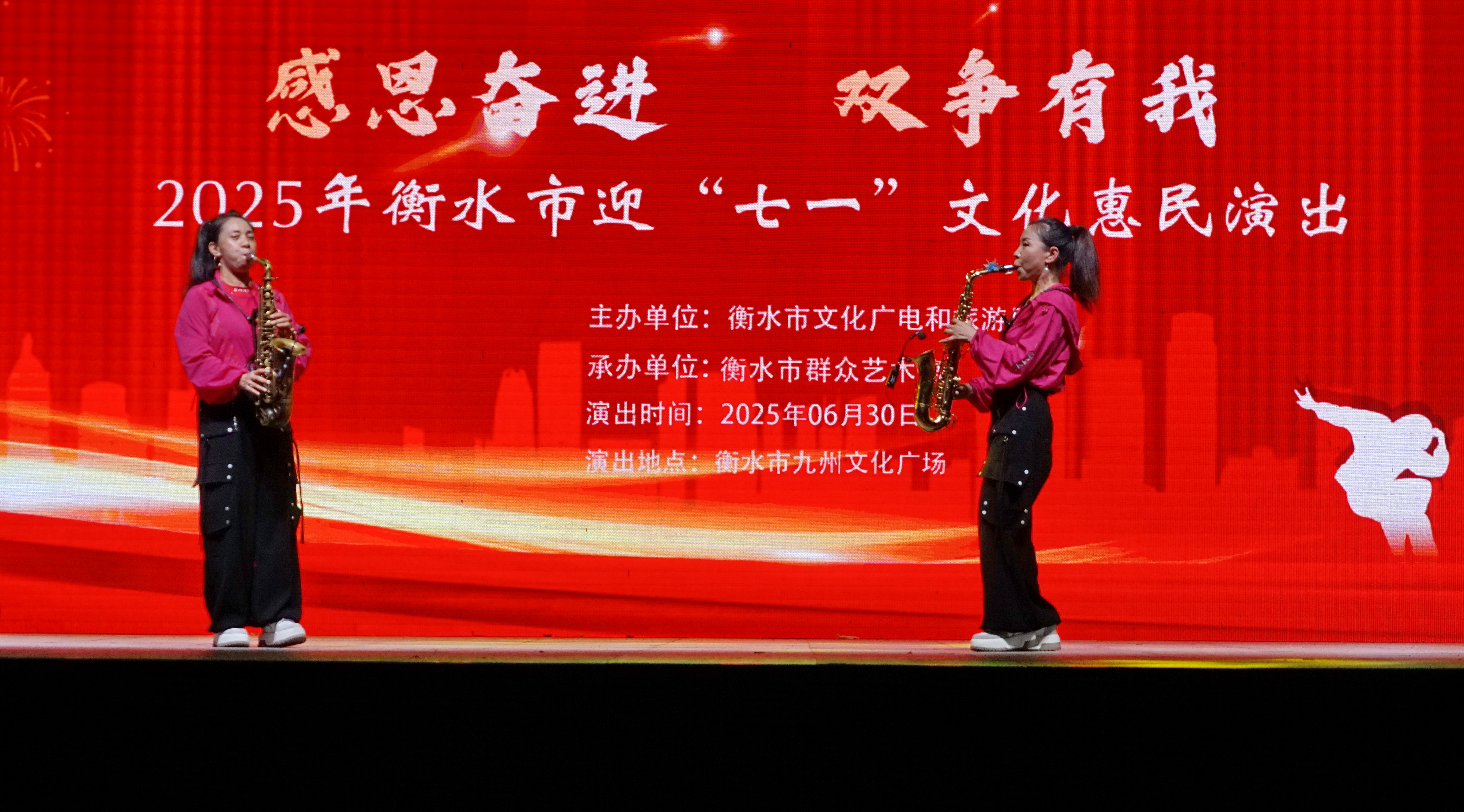 6月30日,由衡水市文化广电和旅游局主办,衡水市群众艺术馆承办的“感恩奋进 双争有我”主题群众文化活动暨2025年衡水市迎“七一”文化惠民演出,在九州文化广场圆满举办,现场掌声与欢呼声不断。
